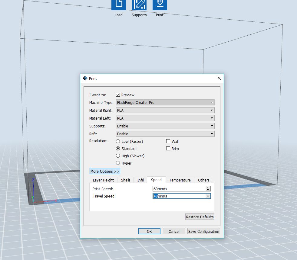 จะทำให้ได้ไฟล์นามสกุล STL ออกมา และต้องนำไปสั่งพิมพ์ผ่านโปรแกรมที่ใช้คู่กับเครื่องพิมพ์ 3D ที่มี เช่น FlashPrint กับเครื่องพิมพ์ FlashForge Creator X