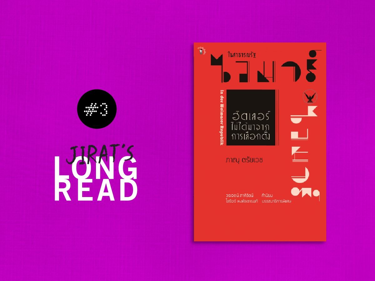 "นอกจากนี้ ผู้เขียนยังเล่าถึงที่มาและการขึ้นครองอำนาจของฮิตเลอร์ พร้อมกับบรรยากาศอันคุกรุ่นและน่าหวาดสยองในช่วงปลายของสาธารณรัฐ หากไม่ใช่เพียงความน่าหวาดสยองของความสุดโต่งอันนำไปสู่สงครามโลกและการฆ่าล้างเผ่าพันธุ์ แต่เป็นความหวาดสยองที่มาจากความเมินเฉยต่อสิ่งอยุติธรรมของชนชั้นกลางในยุคนั้น และนั่นคือเหตุผลหนึ่งที่ทำให้ฮิตเลอร์ขึ้นสู่อำนาจ—เป็นทัศนียภาพที่คลับคล้ายกับบ้านเราตอนนี้อย่างบอกไม่ถูก”