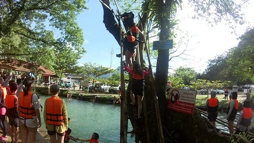 นาทีระทึกใจ เตรียมโดด 55555       พอตอนจะกลับ ก็ถึงเวลาที่ต้องล้ำรากันแล้วนะ เพื่อนคนเกาหลีก็เลยบอกเราว่า 'ขอเมลล์หน่อยจะส่งรุปมาให้ เราก็เลยให้เมล์เขาไปแล้วก้ไปถ่ายรุปด้วยกันแล้วก็ไปถ่ายให้เขาด้วย สุดท้ายแล้วการเดินทางไปวังเวียงนี้ เราไม่ได้ลำพังอย่างที่ันควรรจะเป็นไป สำหรับการมาคนเดียว การมาคนเดียวทำให้เรา "กล้า" และเป็นตัวของตัวเองมากขึ้น ตอนค่ำๆก้เดินไปหาไรกินก่อนจะนอน