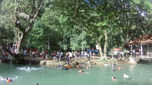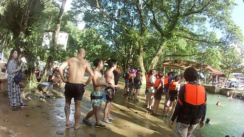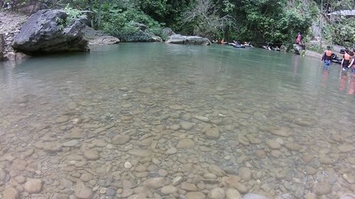 พอเวลา 9.00 โมงก็มีรถบัสจากทัวร์มารับ ในนั้นมีคนอยู่ 9 คน รวเราด้วยซึ่ง....ทุกคนแม่งเป็นคนเกาหลีหมดเลย พอเราขึ้นไปปึ๊ปทุกคนก็กล่าวว่า "เซมิมาเซะ" เราก็ตอบกับไปว่า "Hello" ถถถถถ คือล่ะเพิ่งมารู้ทีหลังว่าคนพวกนั้นเขาใจว่าเราเป็นคนญี่ปุ่น 55555 โถว่คิดไปนะ 55555 จุดแรกที่เราไปคือเราไป "ถ้าน้ำ" พื้นที่ที่จะไปถ้ำน้ำเนี่ยก็ต้องเดินไป ใช้เวลาประมาณ 15 นาที อยากจะบอกว่าโคตรร้อนเลยยยยย เตรียมครีมกันแดดไรให้พร้อมนะ หมวกด้วย  ถ้ำน้ำก็จะมีนักท่องเที่ยวเต็มไปมหด ในถ้ำนี้ก็จะ "ไม่มีอะไร" 555555555 คือในถ้ำมันก็มืดๆเว้น ถ่ายรูปก็มองไม่เหน แต่เราไม่เคยลอดถ้ำเลยตื่นเต้นว่าเอ้อในถ้ำจะมีอะไร แต่ก็ไม่มีอะไร 5555 เราก็ลอดบนห่วงยางแล้วก็นั่งๆไปน่ะแหละ สาวเชือกไปเรื่อยๆๆๆ น้ำข้างในเย็นมาก