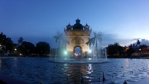 ที่เรียนภาษาฝรั่งเศสที่ลาว         และแล้วอีกหนึ่ง destination ก็มาถึงคือออ ที่ประตูไชยนั่นเอง เราก็ถ่ายรูปเดินเล่นไปเรื่อยๆ ที่ประตูชัยเขาก็มีบริการถ่ายรูปให้นะ แต่เราว่าตอนเยนมันมืดๆล่ะกลัวแสงไม่สวย งั้นมาตอนเช้าพรุ่งนี้ดีกว่า จนกระทั่งได้ดูประตูชัยตอนกลางคืนก็สวยนะ สวยไปอีกแบบ