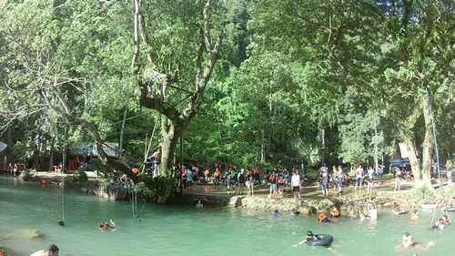 พออกมาจากถ้ำก็ไปแช่น้ำแบบสบายๆแปปนึง เเล้วก็กินข้าวที่ทางทัวร์เตรียมไว้ให้ เราว่าเขาเตรียมดีนะ มีข้าวผัด บาร์บีคิว บาแก็ต น้ำเปล่า และเบียร์ลาว อร่อยสมรีวิวจริงๆ จากนั้นเราก็ไปต่อที่ถ้ำช้าง ซึ่งก็นั่นแหละมันมีหินงอกออกมาเป็นรูปช้าง แต่ถามว่ามีอะไรไหม...ก็ไม่ 55555555
