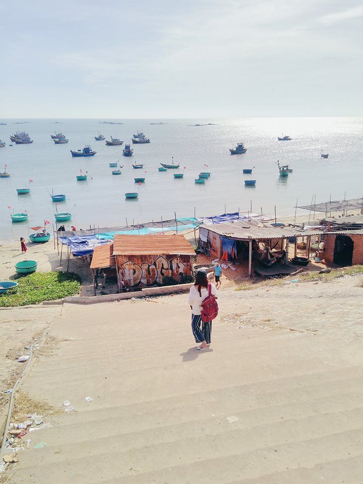 พอเดินทางมาถึงเมืองสุดท้ายซึ่งก็คือมุยเน่เหมาะกับเป็นเมืองปิดทริปมากๆ น่าแปลกที่เมืองชายทะเลอย่างมุยเน่มีไฟแดงเยอะกว่าโฮจิมินห์ซะอีกฮ่า มาที่นี่คุณก็จะได้เจอกับดับเบิ้ลทะเล ทำไมน่ะเหรอก็มีทั้งทะเลและทะเลทรายคอมโบอยู่ในเมืองเดียวเชื่อว่าหลายคนที่มาเวียดนามก็มีช็อตเด็ดอยู่ที่นี่กันใช่ม้าถ้ามาถึงแล้วก็อยากให้มาลองเล่นน้ำมหาสมุทรแปซิฟิกกันนะแล้วจะรู้ว่าข้อดีของมันคือ น้ำไม่เค็มเลยอ่ะ! เข้าตาก็ไม่แสบชอบๆๆ อยากเอาไปเปลี่ยนกับน้ำทะเลบ้านเราจริ๊ง ส่วนทะเลทรายก็ไม่มีอะไรจะพูดมากมันสวยจริงๆ ถ่ายยังไงก็สวย เชื่อเถ้อะ อ้อ ที่สำคัญทะเลทรายลมแรงมากกทรายเข้าตาได้ทุกวินาที ใครมีแว่นกันแดดก็เอาติดไปด้วยนะ จะได้กันทรายได้ส่วนหนึ่งส่วนการเที่ยวที่มุยเน่ไม่แนะนำให้เอาของไปเยอะ เพราะต้องเดินขึ้นลงเนินทรายด้วยเดินในที่เปียกๆ ด้วย อากาศร้อนด้วย มันอาจจะทำให้หนักและรุงรังเกินไปจนอาจหมดสนุกเพราะฉะนั้นพกเฉพาะที่จำเป็นและเน้นคล่องตัวเป็นสำคัญเป็นพอ