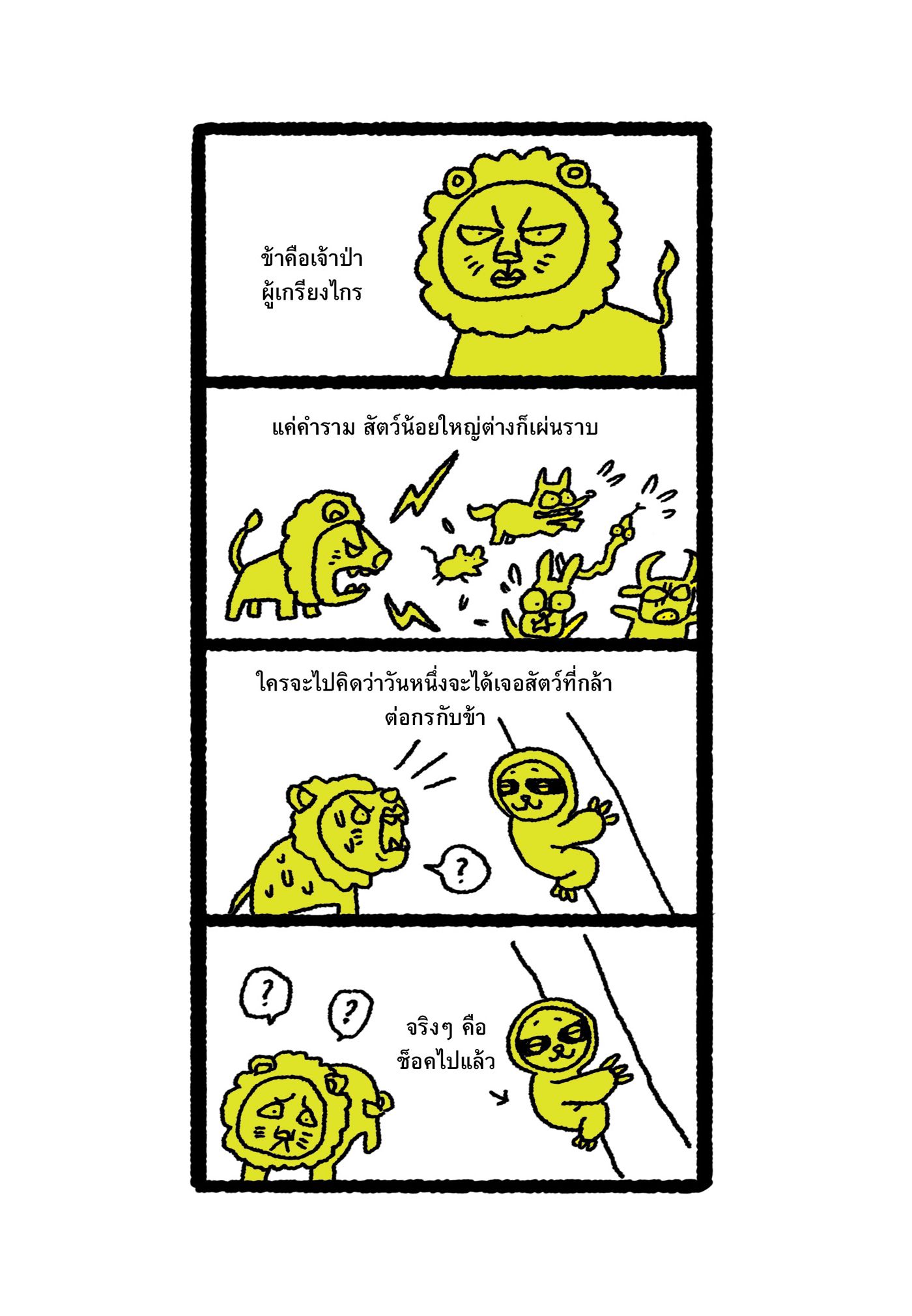 เพื่อไม่ให้เป็นการเสียเวลาอ่านหนังสือในห้องน้ำของคุณ (ลองทักหว่านๆ ดู เผื่อจะมีสักคนที่กำลังอ่านไปขี้ไปอยู่จริงๆ) ผมจะขอกล่าวถึงสิ่งมีชีวิตที่ปรากฏตัวอยู่บนหน้าปกหนังสือเล่มนี้ แถมยังปรากฏตัวต่อเนื่องทั้งในหน้า 44, 51, 57 และ 113 เป็นต้นไปอีกด้วย...แน่ะ เริ่มมามึงก็สปอยล์เลยนะ