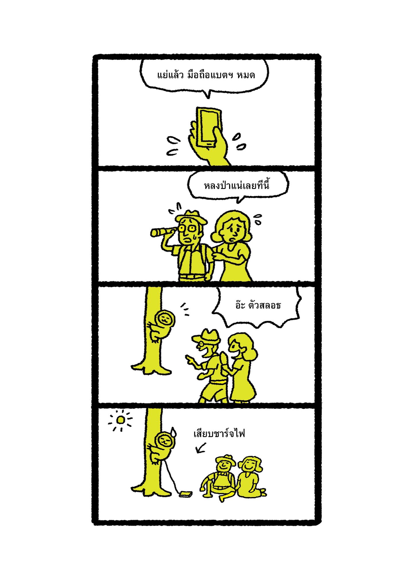 ไม่ใช่ว่าบรรพบุรุษของมันรู้ตัวว่าข้านี่เชื่องช้าเหลือเกิน ต่อไปลูกหลานคงแย่แน่ถ้าไม่เริ่มหัดอำพรางตัวเสียตั้งแต่วันนี้ ว่าแล้วก็ค่อยๆ วิวัฒนาการตัวเอง เปลี่ยนสีขนให้กลายเป็นสีเขียวทั้งตัว …คือมึงข้ามเผ่าพันธุ์จากสัตว์กลายเป็นพืชได้เลยงั้นเรอะ?