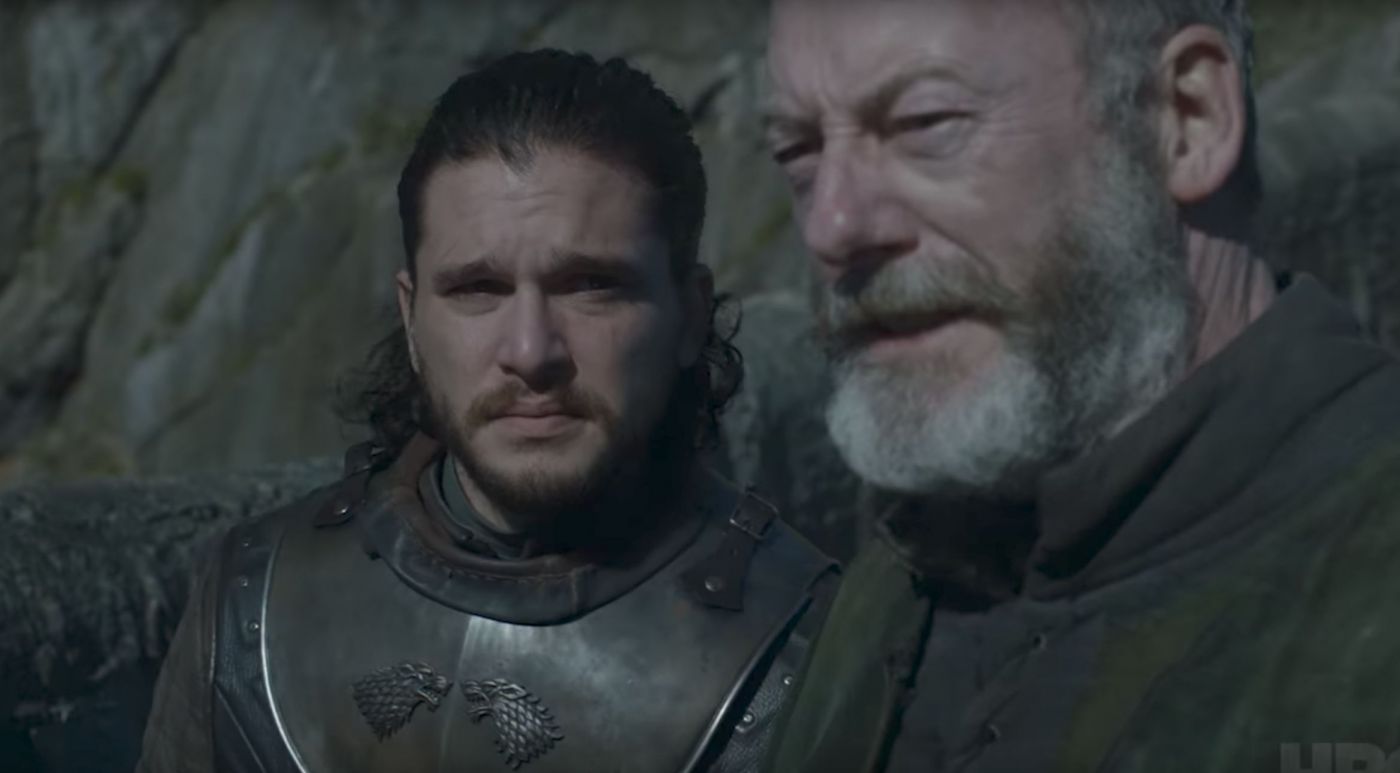 จากแบ็กกราวนด์ จอนมาเจอแดนี่ที่ Dragonstone พร้อมกับลอร์ดหัวหอม (ที่เหมือนเป็น Hand of the King ของจอนแล้ว)