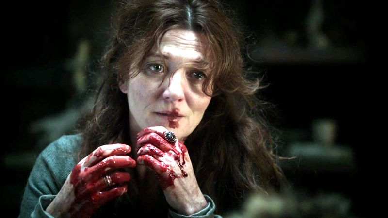 เชื่อว่าทุกคนที่ดู GOT คงจำฉากนี้ได้ขึ้นใจ เป็นฉากที่ทำให้หลายๆ คนซูฮกในความเป็นแม่ของเลดี้สตาร์ก นายหญิงแห่งแดนเหนือที่ไม่มีทักษะการต่อสู้หรือป้องกันตัวใดๆ แต่เมื่อภัยมาถึงลูกชาย เลดี้สตาร์กก็สู้แบบไม่ห่วงชีวิตของตัวเอง ยิ่งในซีซั่น 3 ฉาก Red Wedding ที่เราถึงกับน้ำตาไหลเพราะสงสารนางเลย เลดี้แคทลีนมีความเป็นแม่ต่างจากเซอร์ซี่ตรงที่ไม่มีความกลัวตายเท่ากลัวลูกของตัวเองตาย เห็นได้ว่าพอลูกชายคนโตถูกฆ่าแล้ว แคทลีนก็ไม่มีความตั้งใจจะอยู่บนโลกนี้อีกต่อไป (ฮือ TT)