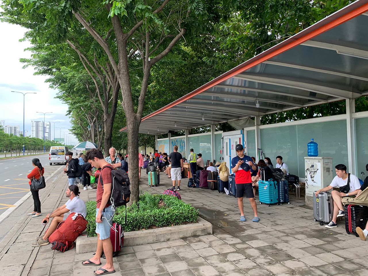 ณ ฟาม งู เหลา ด้านหน้าจุดจำหน่ายตั๋วรถบัส