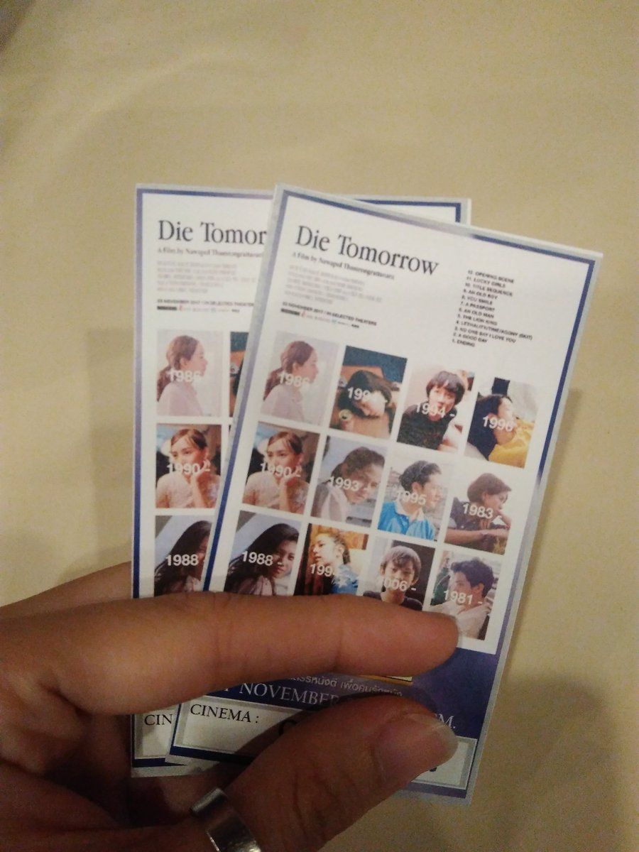 ในช่วงหลังๆ ของปีมานี้ เราได้อิทธิพลของคนรอบตัวต่อหนังของพี่เต๋อมาพอสมควร ตามไปดูหนังเก่าๆ ของพี่เขาด้วย อ่านบทสัมภาษณ์ บลาบลา แล้ววันนี้ก็ได้บัตร Die Tomorrow มา ก็เลยชวนน้องไปดูด้วยกัน