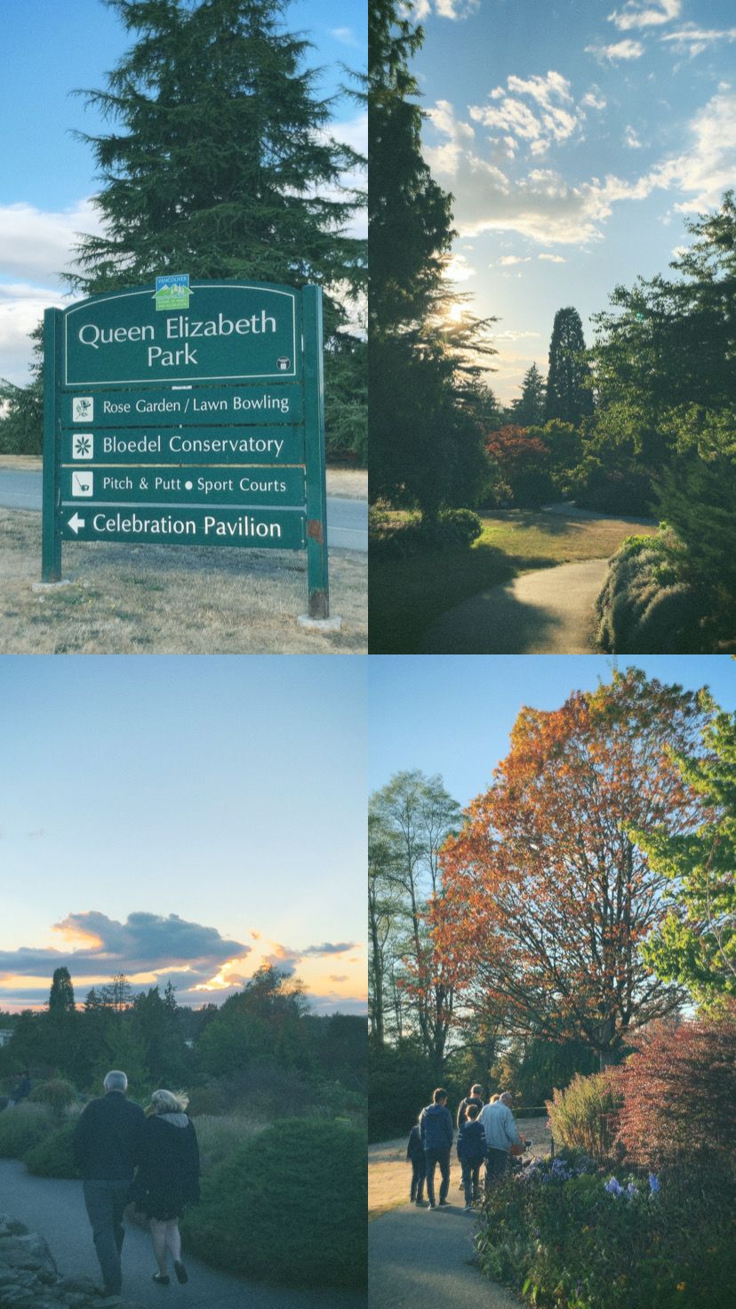 Queen Elizabeth Park สวนที่มีคนมาถ่ายรูปแต่งงาน และมาแต่งงานกันเยอะที่สุด สวนนี้เป็นสวนที่สูงที่สุดในแวนคูเวอร์ สามารถเห็นแวนคูเวอร์ในมุมสูงได้ สวนที่เวลาพระอาทิตย์ตกแล้วสวยม๊ากกกก แล้วกิจกรรมที่จะทำเยอะมากจริง ๆ กว้างแบบตะโกน จากที่ไปอีกที่เหมือนอยู่คนละเมือง ไกล๊ไกล แต่สวยมาก ๆ คุ้มค่าการเดิน เป็นสวนที่มี vibe ของการเดทและครอบครัวมาก ๆ