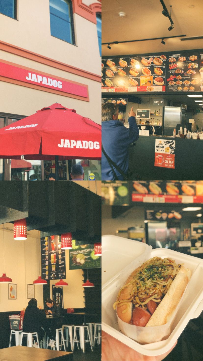 ร้าน "Japadog" ที่เหมือนเป็นร้านดังของแวนคูเวอร์ที่เอาอาหารญี่ปุ่นมา fusion จาก Japan + Hotdog ไส้กรอกอร่อยจริง ๆ จากใจคนที่ไม่ชอบกินขนมปัง 555555 เลยมีความ bias ที่จะเลือกกินแต่ไส้กรอก 5555 แล้วมันอร่อยได้แบบ งง ๆ ที่แวนคูเวอร์มีหลายสาขาอยู่นะ วันหลังบีมว่าจะไปลองทาโกะยากิสักหน่อย