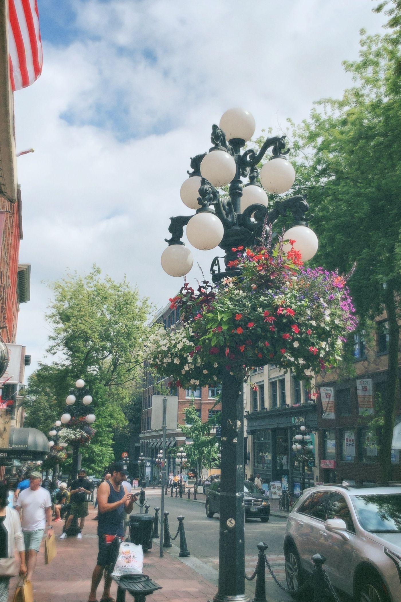 หลังจากอาบน้ำเสร็จ ก็ตัดสินใจว่าจะออกไปซื้อบัตรเดินทาง Compass card แบบ 1 zone ราคา $108.55 พอพยายามซื้อที่ตู้แล้วตู้ไม่อ่านบัตรไทยทั้ง TTB และ Scb Planet แล้วตู้ไม่รับแบงก์ $100 รับสูงสุดแค่ $50 เอาหล่ะ บีมเริ่มเลย บีมเดินไปรอบ ๆ เพื่อหาร้านที่สามารถซื้อของสักเล็กน้อยเพื่อให้ได้แบงก์มาซื้อบัตร แต่ว่าตัดสินใจว่าอยากไปซื้อกับพนักงานดีกว่า เลยซื้อตั๋วแบบเที่ยวเดียวเข้าเมืองไปลงที่ Granville แล้วไปซื้อ Compass เรียบร้อย บีมเลือกแบบพวงกุญแจมา จริง ๆ แล้วมีทั้งหมด 3 แบบคือ บัตร พวงกุญแจ และข้อมือค่ะ แพ้ความน่ารักของพวกกุญแจ 55555 พอเข้าไปก็เลยเริ่มเดินสำรวจ อย่างแรกคือเดินหาโรงเรียนซึ่งไม่ไกลมากนัก แล้วเจอโรงเรียนตัวเองสองที่ เลยคิดว่ารอดูอีกทีละกันว่าจริง ๆ คือที่ไหน ติดกับโรงเรียนมี Miniso และ Dallarama เป็นร้านคล้าย ๆ Mr.DIY ที่ไทย มีของทุกอย่างแบบนั้นเลย ฟีลเดียวกันต่างกันแค่ที่นี่เป็นภาษาอังกฤษ ? ก็ซื้อของมาเล็กน้อย ด้วยความที่กลัวว่าจะ Jetlag เลยพยายามอยู่ให้ได้อย่างน้อย 2 ทุ่ม เวลาประมาณเกือบบ่ายสองบีมเริ่มไม่รู้จะทำอะไรดี เลยเดินไปแบบไม่เปิดแมพ เดินไปตามใจต้องการเลย เดินไปถึงริมทะเล น่าจะเป็นท่าอะไรสักอย่าง ไปนั่งพักสักพัก รับลมดูคนเดินไปเดินมาก็สบายใจดีนะ หลังจากนั้นสักพักบีมก็เดินไปเรื่อย ๆ จนเจอ Gastown เจ้านาฬิกาพ่นน้ำแบบงง ๆ ถนนเส้นนี้มีความดูถูกประดับและทำให้ดู photogenic มาก ๆ สองข้างทางที่มีเสาประดับด้วยกระถางดอกไม้ที่สีสันเข้ากันได้ดีกับสีตึกสีน้ำตาลที่ดูมีความ classic เหมือนเดินแถวยุโรปเลยแหละ แถวนั้นคงเป็นแหล่งท่องเที่ยว เพราะมีร้านขายของฝากเรียงรายยาวไปตามเส้นถนน และผู้คนต่างมาถ่ายรูปกับเจ้านาฬิกาปู๊น ๆ นี้เต็มไปหมด บีมเลยแชะภาพมาสักหน่อย ถือว่ามาถึงแล้วนะ