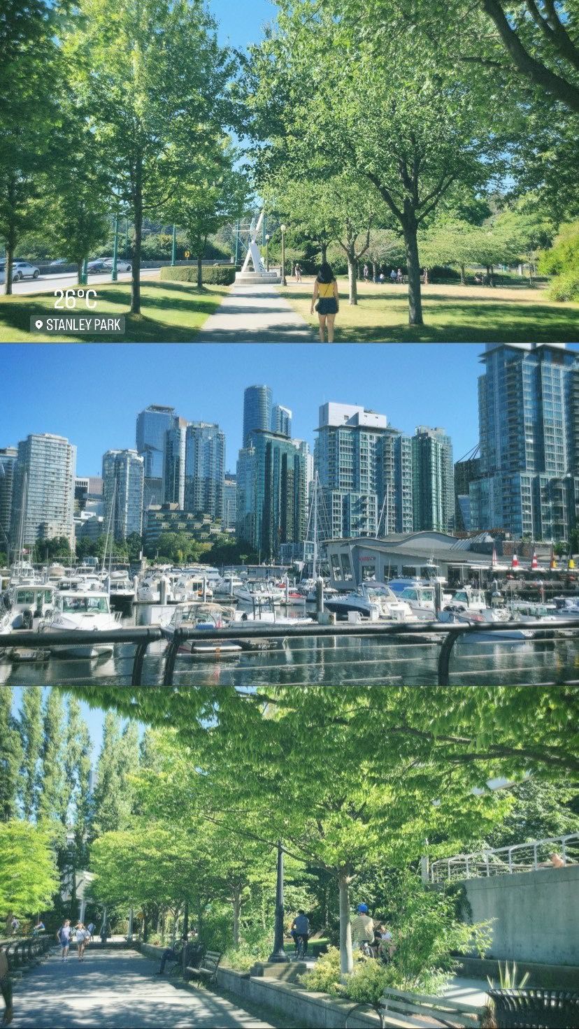 ได้เวลาพักผ่อนสักหน่อยย วันนี้ตื่นแบบสบาย ๆ แล้วก็วางแผนกับพี่ว่าจะไปเดินเล่นสักหน่อย เราได้ไปเดินที่ Stanley Park เป็นสวนขนาดใหญ่ คนเยอะมากอาจเพราะว่าช่วงนี้แดดดีมาก ๆ ส่วนคนไทยอย่างเรา ๆ เดินหาเงาต้นไม้เพราะแดดมันร้อน ในสวนมีทั้งคนพาเด็กมาเล่น พาน้องหมามาเดิน คู่รักมาเดท กลุ่มเพื่อนมาปิกนิค ปาร์ตี้ในเรือ มีร้านอาหารบ้างประปราย ดูเป็น public space จริง ๆ แบบอากาศสดชื่นมาก สามารถหากิจกรรมมานั่งทำร่วมกันได้ จะเดินเล่นหรือปั่นจักรยานก็ได้นะ (มีให้ยืม) เอาบรรยากาศมาฝาก