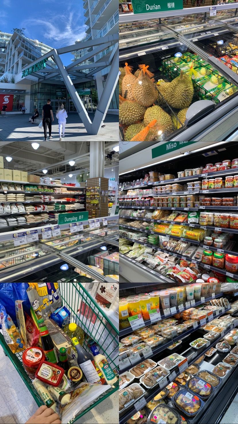 หลังจากเริ่มมีของใช้ เครื่องครัวแล้ว ได้เวลาเตรียมตัวเป็น Master Chef เวลาที่รอคอยมาแสนนาน ไม่ต้องทนกินมาม่าหรืออาหารแปรรูปแล้ว สถานีไปวัถุดิบทำอาหาร หาทางไป T&T ให้ได้ เป็นห้างสำหรับอาหารเอเชีย คิดว่าเป็นห้างของคนจีนนะ ระหว่างทางเดินไปขึ้นบัสเพื่อไป T&T ก็เจอกับร้านมาร์ทเอเชียเล็ก ๆ ข้างทางแต่ของอัดแน่นมาก อยู่ไม่ไกลบ้านด้วย คือดีใจแบบสุด ๆ เพราะจะได้ไม่ต้องนั่งบัสไป T&T บ่อย ๆ แต่พอได้ไปที่ T&T ก็ทำให้บีมเปลี่ยนใจว่ามาที่นี่ก็ได้ 55555 นี่มันสวรรค์ชัด ๆ มีอาหารเอเชียทั้งสด แช่แข็ง เครื่องปรุง ของใช้ ผลไม้ มีตีนไก่ด้วย ประทับใจจจ แทบจะทุกอย่างที่คนเอเชียนึกออก (แต่ไม่มีซอสสุกี้ บีมเสียใจ ?) บีมบอกเลยว่าบีมใช้ชีวิตเดินอยู่ที่นี่ได้ทั้งวัน เดินไปเดินมาของเต็มถุงอีกแล้ว 55555 ซื้อแบบกะว่าไม่มาอีกแล้ว (ล้อเล่น) สุดท้ายจบด้วยซื้อซูชิที่มาร์ทมากินตอนเย็น เพราะหมดแรงไม่อยากทำอาหารแล้ว