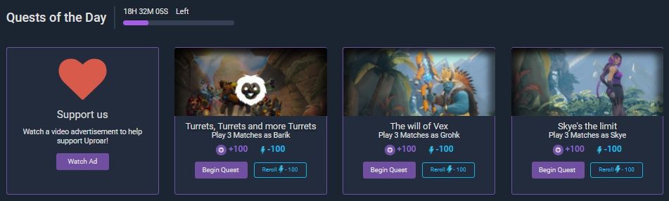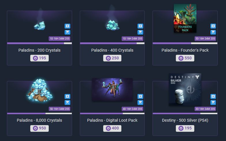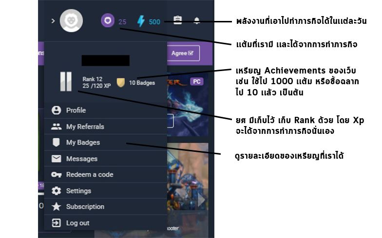 เกมก็มีเท่าที่เห็นเลยครับคาดว่าในอนาคตน่าจะมีอีกเยอะเลย เเต่คงไม่ใช่เกมออนไลน์ในบ้านเรานะ คงเป็นสายอินเตอร์อย่างที่เห็น ส่วนต่อมาที่เห็นคือหน้ากดรับภารกิจนั่นเอง ซึ่งหลังจากสมัครเรียบร้อย ก็จะต้องเลือกเกมกันก่อน เเล้วค่อยกดรับภารกิจกัน โดยจะมีทั้งหมด 4 ภารกิจ อันที่เป็นรูปหัวใจก็คงต้องดูโฆษณาช่วยๆ ทางเว็บเขาซะหน่อยล่ะเนอะ ถึงจะได้มา (ขอยกตัวอย่างจากเกม PALADINS ที่ผมเล่น)