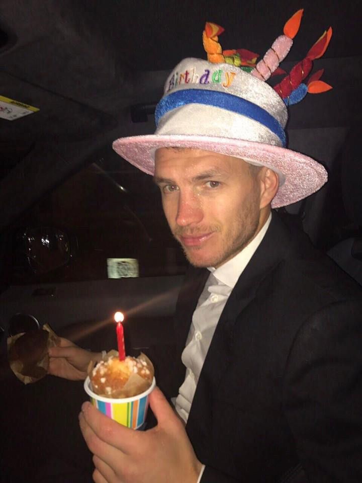 เอดิน เจโก้กับเค้กจิ๋วในมือ ในโพสกล่าวขอบคุณแฟนๆสำหรับข้อความอวยพร (cr : Edin Džeko)