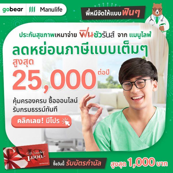1. ประกันสุขภาพเหมาจ่ายฟินเวอร์จาก Manulife