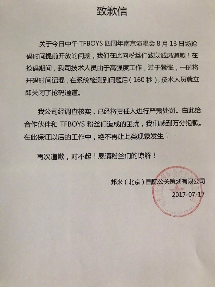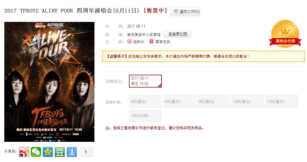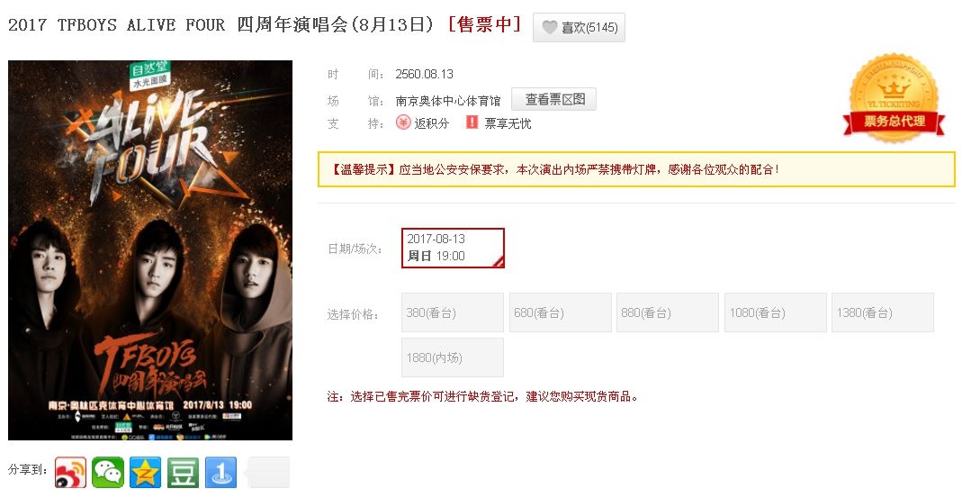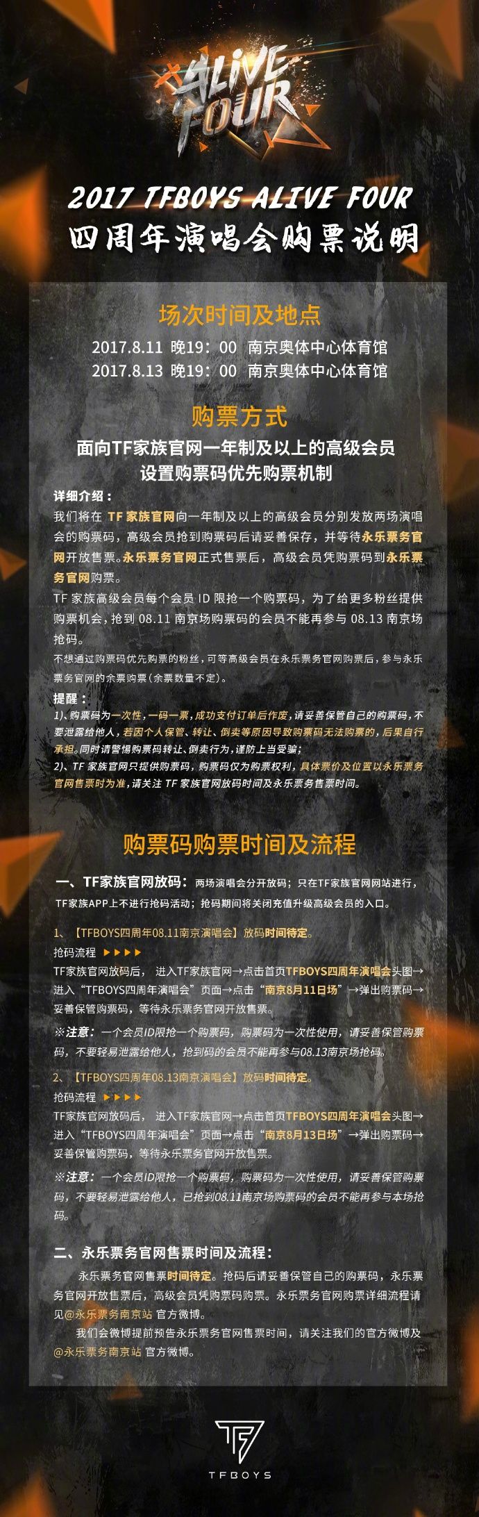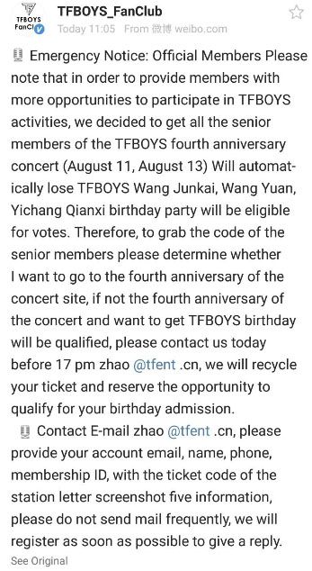 TFBOYS_FanClub ซึ่งเป็นเว่ยป๋อออฟฟิเชียลของแฟนคลับ TFBOYS ก็อัพเดทด้วยเช่นกัน แต่เป็นรายละเอียดการจองตั๋วรอบพรีเซลสำหรับสมาชิกแฟนคลับ