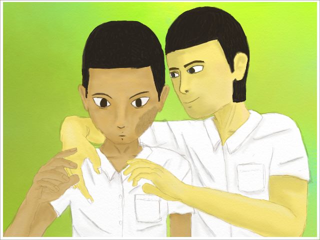 ผมเองก็มีเหตุผลมากเพียงพอทีี่ผมควรทำอย่างนั้น พี่เขาก็สมควรเจ็บตัวเหมือนกับความเจ็บที่พี่เขาทำกับผม ผมไม่น่าใจดีและปล่อยพี่เขาไปแบบนั้น ในตอนนี้ผมก็ไม่ได้รักพีี่เขาเลยเสีียด้วยซ้ำ เขาไม่เคยใส่ใจความรู้สึกผม เขาทำลายความหวังของผม พี่เขายังคงทำให้ผมปวดใจอยู่เรื่อยมา พี่เขาไม่ได้รักผมหรอก และไม่มีใครรักผมจริิงๆ สักคน ที่ผ่านก็มีแต่คนที่หวังผลประโยชน์จากตัวผม แม้แต่วันนี้ที่พี่เขาทำกับผมเอง พี่ก็ยังมอบความเจ็บปวดฝังทีี่แก้มของผม เป็นความเจ็บปวดที่ถูกตีตราเอาไว้จากคนที่ผมเคยหลงชอบ ไม่ต่างอะไรกับกับปานของผมที่ตีตราอยู่บนแก้มตลอดเวลา