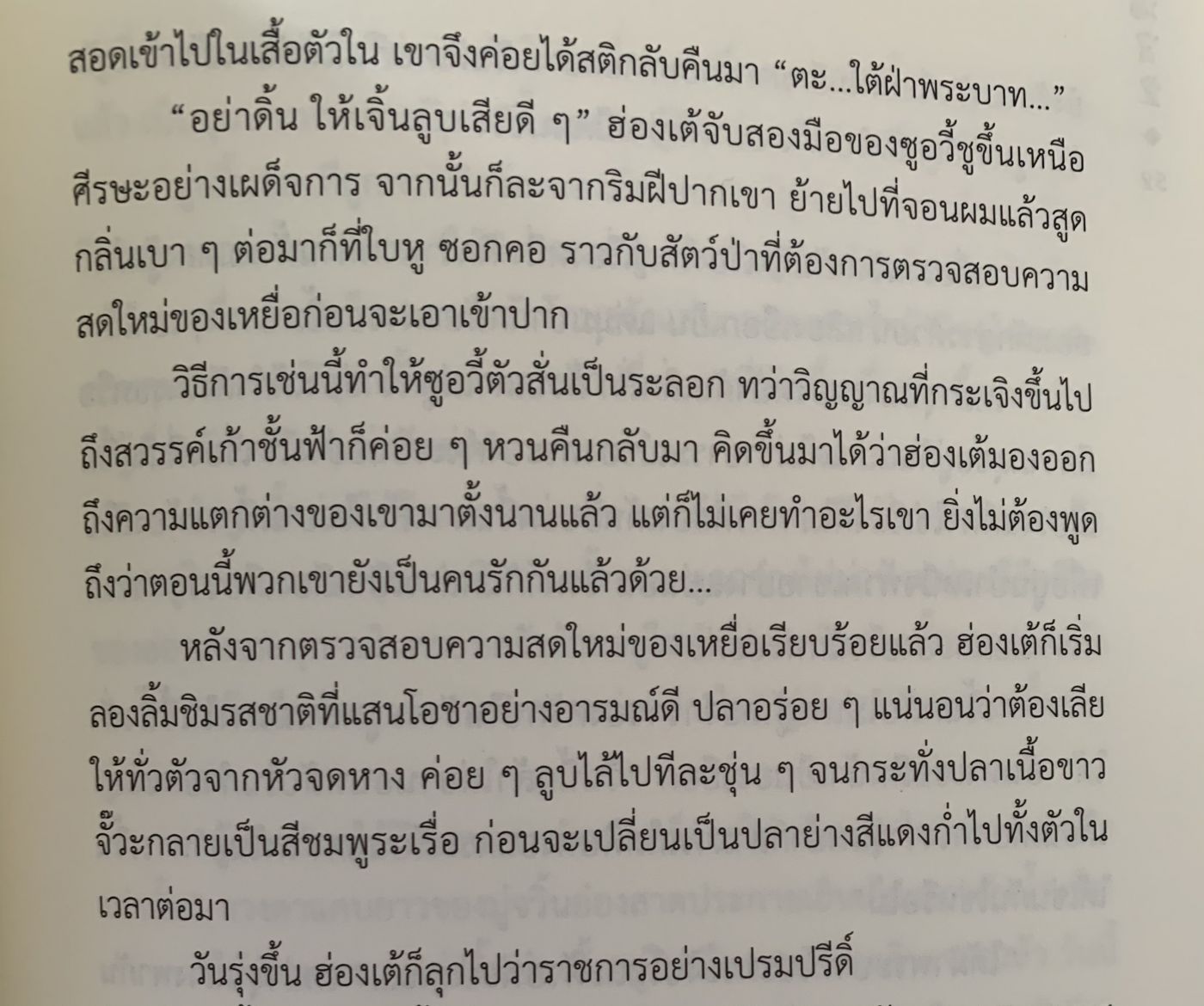 - สภาพร่างกายก็คือต้องอิ่มนะก่อนจะเริ่มอ่าน เพราะอ่านไปหิวไปก็คือลำบาก อาหารเยอะ นายเอกทำอาหารอร่อย