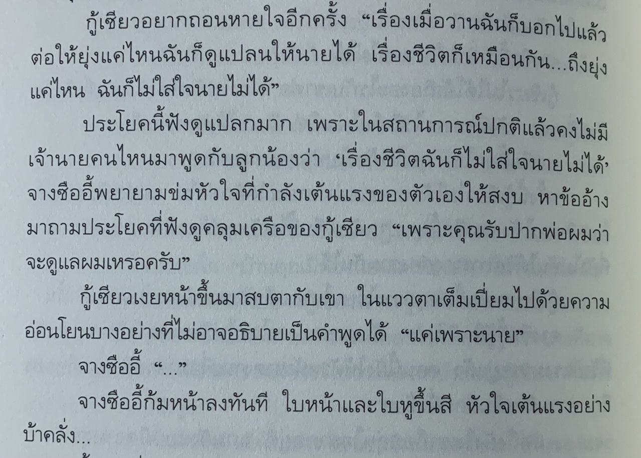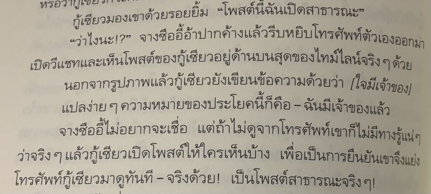 เรื่องเรียนต่อของจางซืออี้ ก็มีท่าทีมานานละว่าจะเรียนต่อมาเล่มนี้ก็คึกหึกเหิมมีความส่งใบสมัครต่างๆไปทางมหาลัยที่อังกฤษก็ด้วยความที่จบมาจากอังกฤษและประสบการณ์ทำงานที่รับงานจริงจังมีความพัฒนาขึ้นมากๆก็ทำให้ติดทุกทีที่ยื่น แต่ปัญหาหลักเลยมันอยู่ที่เรื่องเงินกับความห่างใกล้จากแฟนนิแหละที่ทำให้ไม่ได้บอกกู้เซียวซักทีว่าติดทางกู้เซียวก็คือรู้ได้เพราะไปแอบเปิดเมล์อะ ละทางกู้เซียวก็เซอร์ไพรส์อีกว่าตัวเองก็สมัครเรียนที่อังกฤษไปด้วยเหมือนกันจากตอนแรกจะให้น้องไปคนเดียว แต่พอไปคุยกับพี่ก็คิดได้ว่าถ้าปล่อยน้องไปอนาคตไม่แน่นอนแต่ความห่างไกลมันแน่นอนก็เลยตามติดซะเลย 5555 ส่วนเรื่องเงินแน่นอนว่าจางซืออี้ไม่มีและทางกู้เซียวก็ป๋าให้ ขำความน้องกลัวแฟนจนเพราะคิดว่าเงินเดือนต่อปีไม่เยอะ คิดว่าถ้าไปสองคนไม่น่ามีเงินพอ แต่พอร่ายเท่านั้นแหละท้อเลย เพราะน้องอยากเลี้ยงแฟนไงเจอเงินเก็บแฟนไปยี่สิบล้านก็เงิบ งานใหญ่5555 เลี้ยงตัวเองให้รอดก่อนละกัน