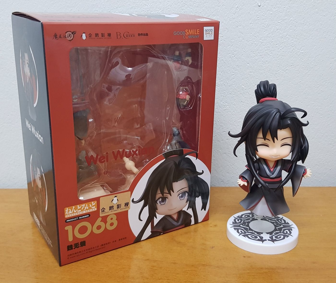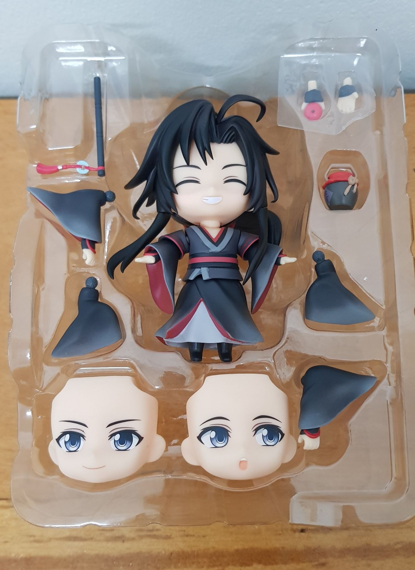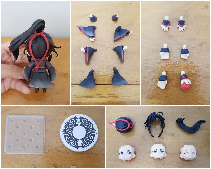 เว่ยอิงตัวนี้เป็นสินค้าของปรมาจารย์ฯฝั่งอนิเมะร่วมกับ Goodsmile company ชื่อรุ่น Wei Wuxian no.1068 มีแบบฐานปกติ(ฐานสี่เหลี่ยมใส) แล้วก็ฐานพิเศษ(ฐานกลมลายประจำตระกูล) ส่วนหัวเปลี่ยนหน้าได้ ในกล่องให้มา 3 แบบ(เราชอบหน้ายิ้มสุด น่าร้ากกกก) หางม้าถอดได้ ปอยผมด้านหน้าถอดได้แถมตรงปอยคู่ด้านหน้ากับหน้าม้าชี้ๆตรงกลางถอดได้(มันดีมันน่ารักอ่าาาา) ตรงส่วนแขนจะมี 3 ท่อน หัวไหล่ แขนเสื้อ แล้วก็มือ ถอดเปลี่ยนได้ แขนเสื้อมีมา 3 แบบ มือมี 3 แบบ Propมีมาเป็นapple(อันนี้ติดมือมาเลย) ขลุ่ยเฉิงฉิง แล้วก็เทียนจื่อเซียว จัดท่าได้ตามใจเลยจ้า