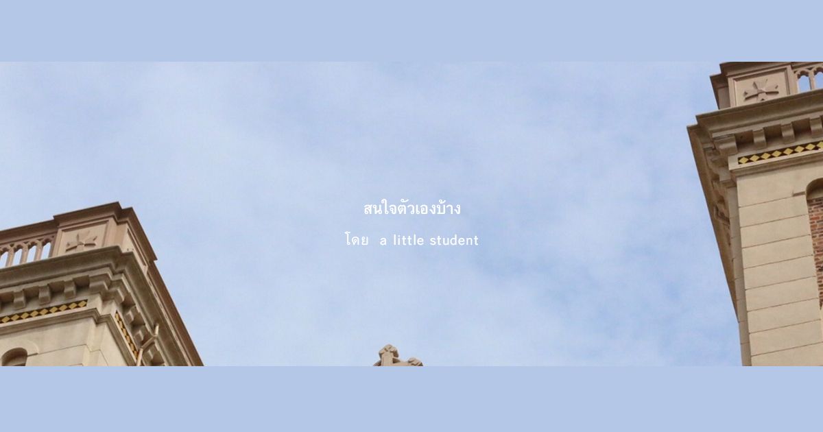 บางครั้งการสนใจคนอื่นก็เป็นเรื่องไม่ดี อ้าว ไงพูดงี้ล่ะ? แปลว่าไม่ต้องสนใครเลยงั้นเหรอ? จริง...ก็เกือบใช่ (อ้าว) แต่หมายถึง ไม่ต้องสนใจใครมากไปกว่าตัวเองนัก คุณ a little student บอกเราอย่างนี้ เพราะหลายครั้งการที่เราเอาใจใส่คนอื่น ทำให้เราคาดหวัง พูดง่ายๆ คือเหมือนถอดหัวใจให้ไปขึ้นอยู่กับคำชมหรือคำติเขานั่นแหละ แล้วนั่นใจเรานะ เอาไปให้เขาทำไม ถ้าจะใส่ใจคนอื่นไม่ต้องให้หมดใจก็ได้ บางส่วนพอ เอาอย่างโวลเดอร์มอร์นะ แยกฮอร์ครักซ์ไว้หลายๆ ชิ้น //เดี๋ยวๆ แต่ก็จริงน้า เผื่อใจไว้หน่อย ให้ใจเขาไปแค่บางส่วน โดนเมินโดนทำลายบ้าง เราก็ยังสร้างเพื่อเติมใหม่ได้ จริงมะ