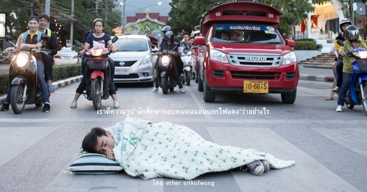 เราตีความรูป"นักศึกษาหอบหมอนนอนแยกไฟแดง"ว่าอย่างไร  โดย  ether srikulwong