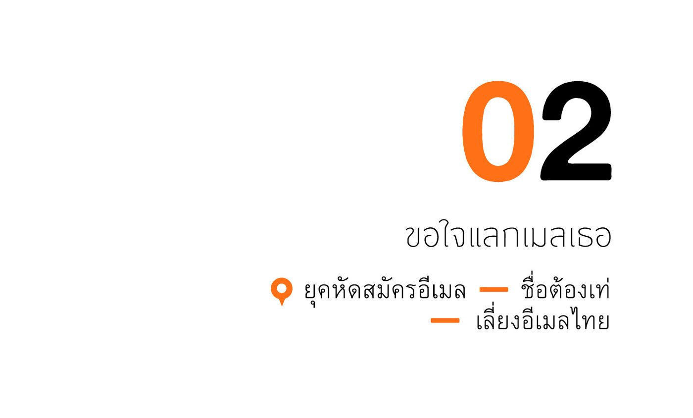 จนกูไล่เลขถึง tor3957693 แม่งถึงจะได้! แต่จะยากไปมั้ยวะ นี่อีเมลหรือรหัสลับเอฟบีไอ…ท้ายสุด ผมจึงตั้งชื่ออีเมลด้วยวิธีสิ้นคิดของยุคสมัยนั้น คือใช้ชื่อตัวเองต่อด้วยรุ่นที่โรงเรียน อย่างผมชื่อต่อ เรียนสาธิตจุฬาฯ รุ่น 38 อีเมลก็เลยเป็น [email protected] และช่วงนั้นอีเมลของเพื่อนๆ ในโรงเรียนก็จะเหมือนกันไปหมด ประมาณ pink_cud38, ohm_cud38, dao_cud38 (ดูแล้วเหมือนกลุ่มลัทธิอะไรสักอย่าง)