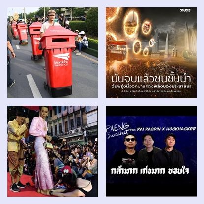 For about one year, the Thai political movement by younger generations such as Free Youth and United Front of Thammasat and Demonstration have given an impact to the society and the government about their demands including the need for Prayuth Chan-ocha to resign from the Prime Minister position, the Thai monarchy reformation and an acceptance of a newly people’s constitution draft. Their political expression depend on creative media like poster and music along with activities such as cosplaying as some members of the Thai monarchy or sending letters to the king within a dustbin painted red like a mailbox.
