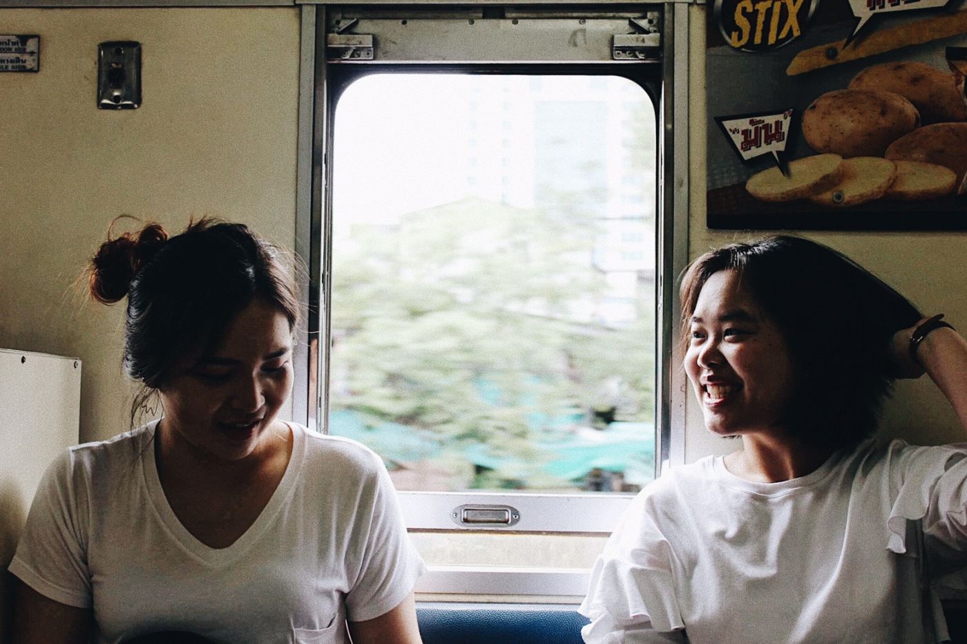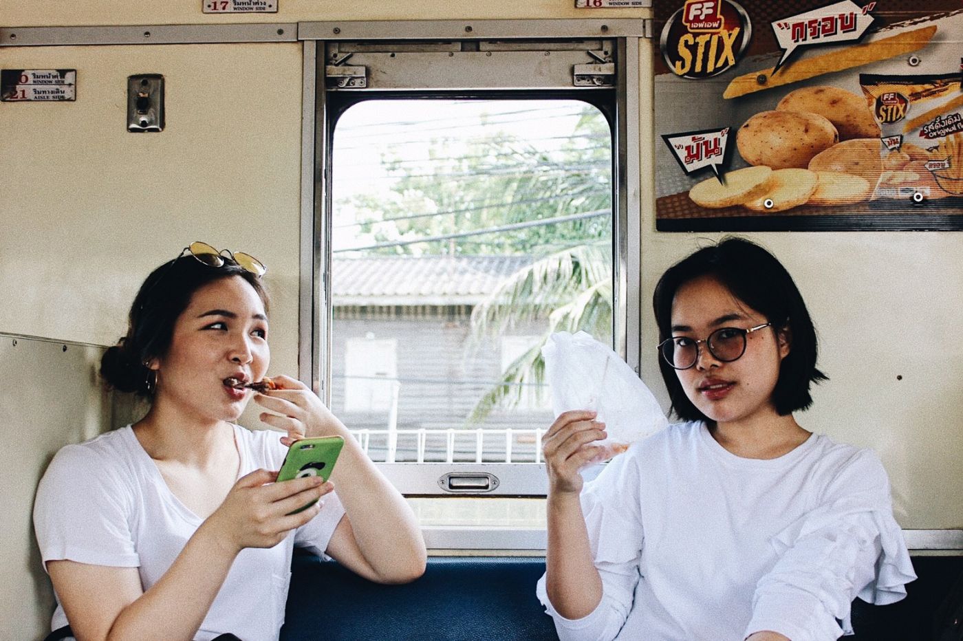 จะว่าพวกเราคุณหนูติดหรูก็ได้นะแต่คุยกันไว้ว่านี้คงเป็นครั้งเดียวและครั้งสุดท้ายที่จะมาขึ้นรถไฟนำเที่ยวชั้นประหยัด อย่างน้อยครั้งหน้าถ้าจะมารถไฟก็คงจะจองแบบปรับอากาศแล้ว เราไปอ่านรีวิวมาก็งงว่าทำไมคนอื่นเขาไม่เห็นบ่นเลย หรือเราจะไม่ได้เกิดมาเพื่อเป็นสายลุย? แต่มันทรมานจริงๆ..เนื่องจากรถไฟเรามันเป็นหัวจักรดีเซล ทำให้ฝุ่นเยอะมาก เยอะจนเสื้อสีขาวกลายเป็นเสื้อสีเทา (ไม่ได้โม้) บวกกับอากาศร้อนๆอาบอ้าวอีกทำให้มันเป็นสี่ชั่วโมงที่กล้ำกลืนสุดๆ ฮึก