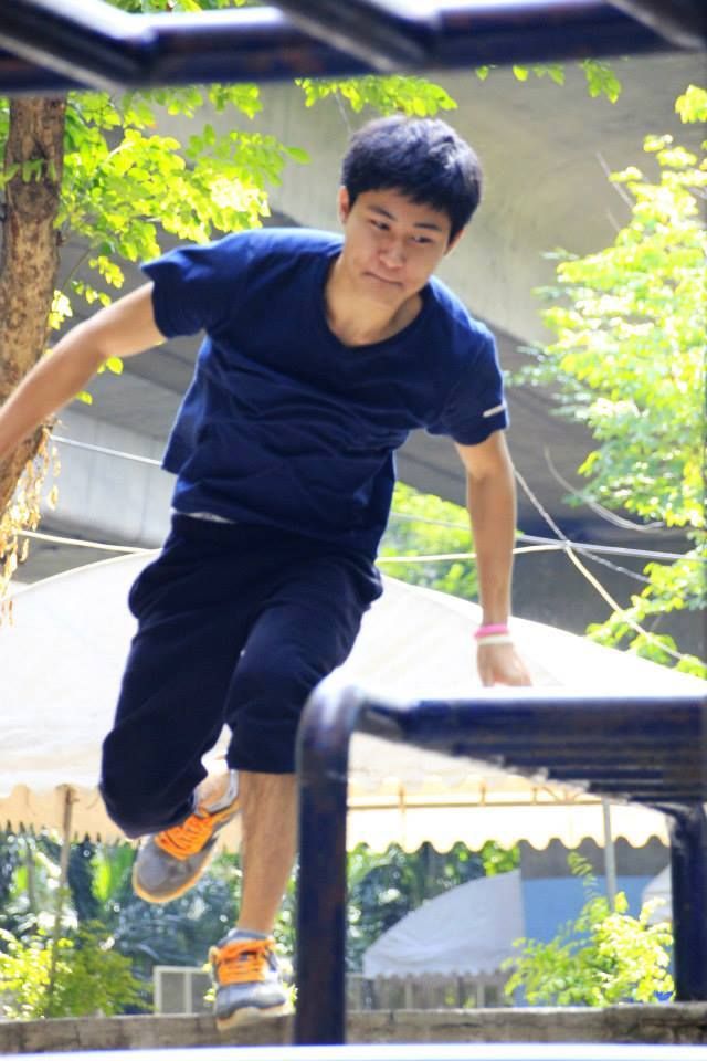 พี่มัธ หนึ่งในอาจารย์ที่สอนผมเเละหนึ่งในกรรมการงานแข่งครั้งนี้ พี่เขาเป็นคนคิดเส้นทางการวิ่งผ่านสิ่งกีดขวางในการแข่ง ตอนนั้นผมไม่คิดเลยว่าตัวเองจะลง เพราะเพิ่งฝึกเล่นได้ไม่นาน แต่พี่มัธบอกอย่างหนักแน่นว่าต้องลงให้ได้ อย่างน้อยก็วิ่งผ่านสิ่งกีดขวาง