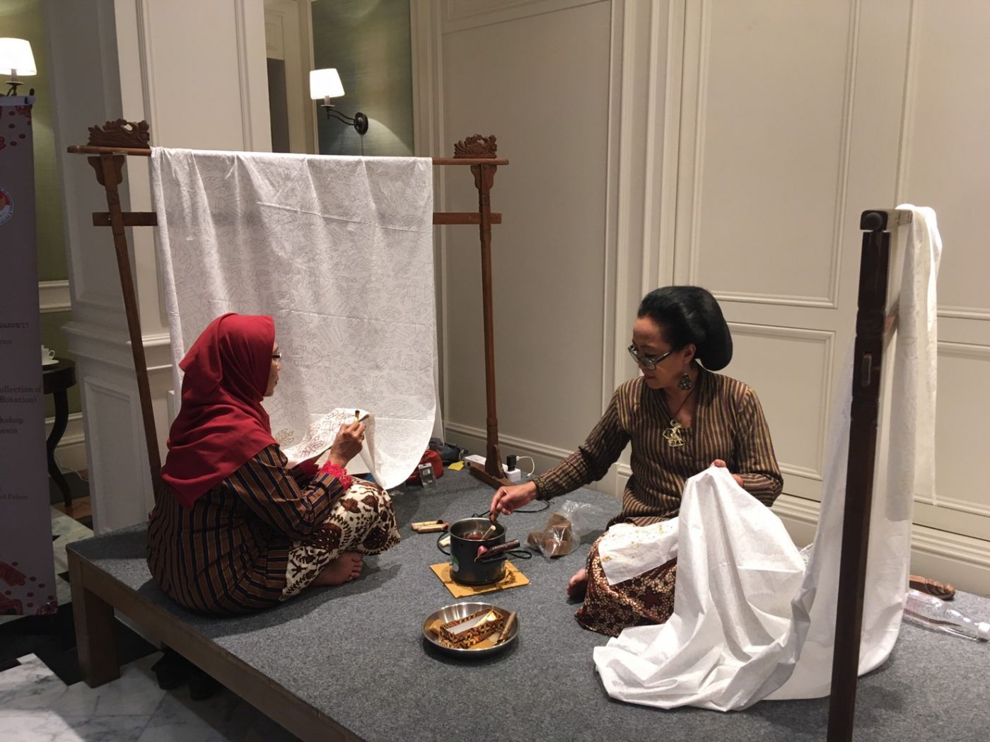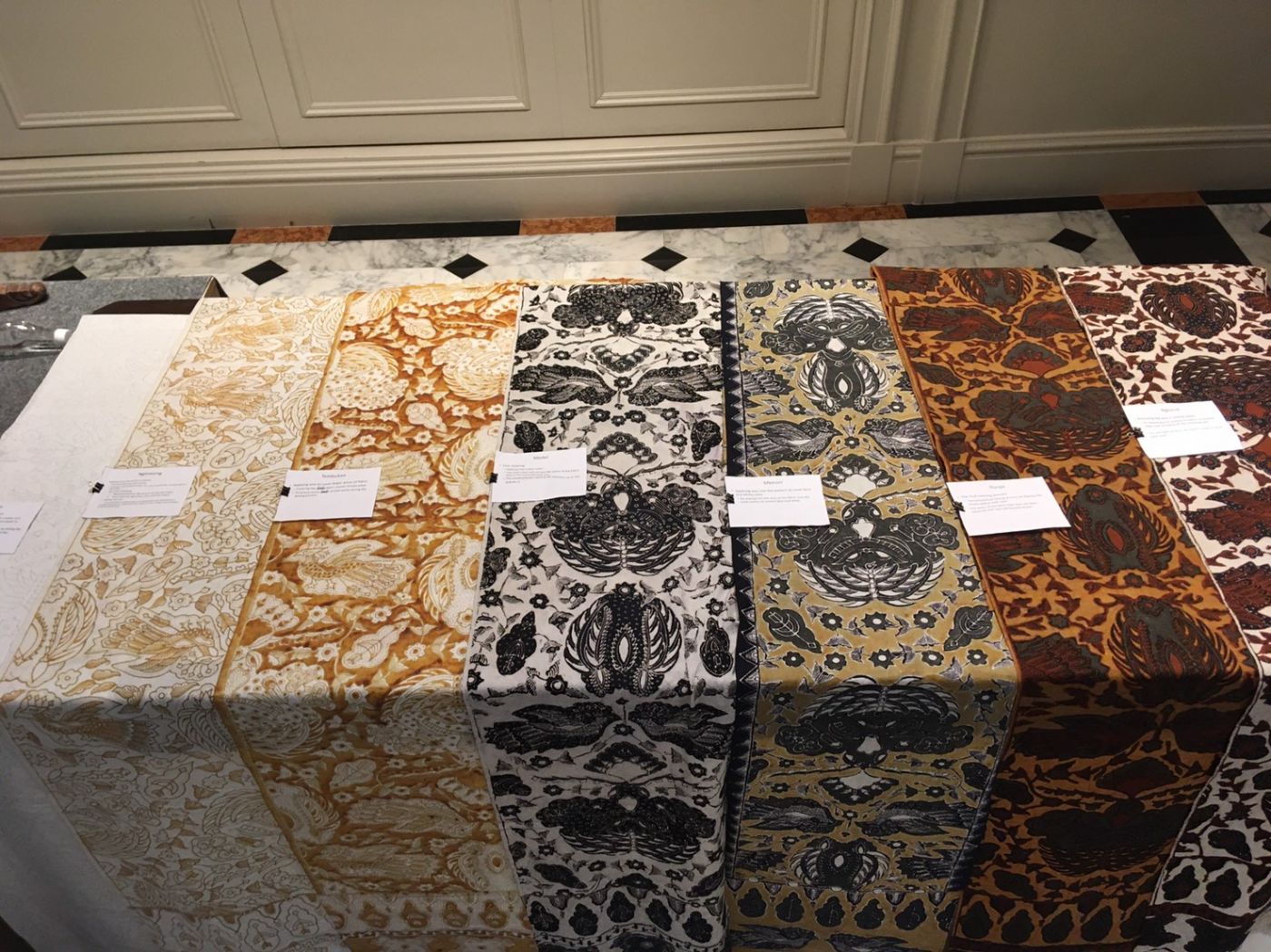 ผ้าบาติกในงานนำมาจากคอลเลคชั่นของพระปิยมหาราชซึ่งได้รับมาจากชวาจากการไปเยี่ยมเยือน ผ้าบาติกจะทำมือทีละผืน โดยมีการลงขี้ผึ้งสลับกับการย้อมสีเพื่อให้ได้ออกมาเป็นสีที่ต้องการในส่วนที่ต้องการจนมาถึงยุคที่เทคโนโลยีก้าวหน้าขึ้นจึงมีการเปลี่ยนมาใช้การพิมพ์ผ้าทั้งผืนแทน