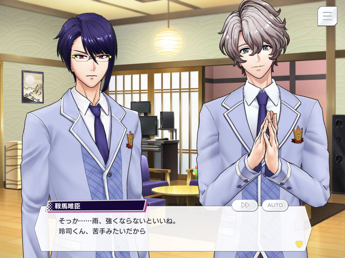 เรย์จิ : รอจนกว่าฝนจะซาลงสักหน่อยดีไหมครับ? คงไม่อยากเป็นหวัดตอนช่วงเวลาสำคัญๆ อย่างตอนก่อนเฟสเริ่มหรอกใช่ไหมล่ะครับ