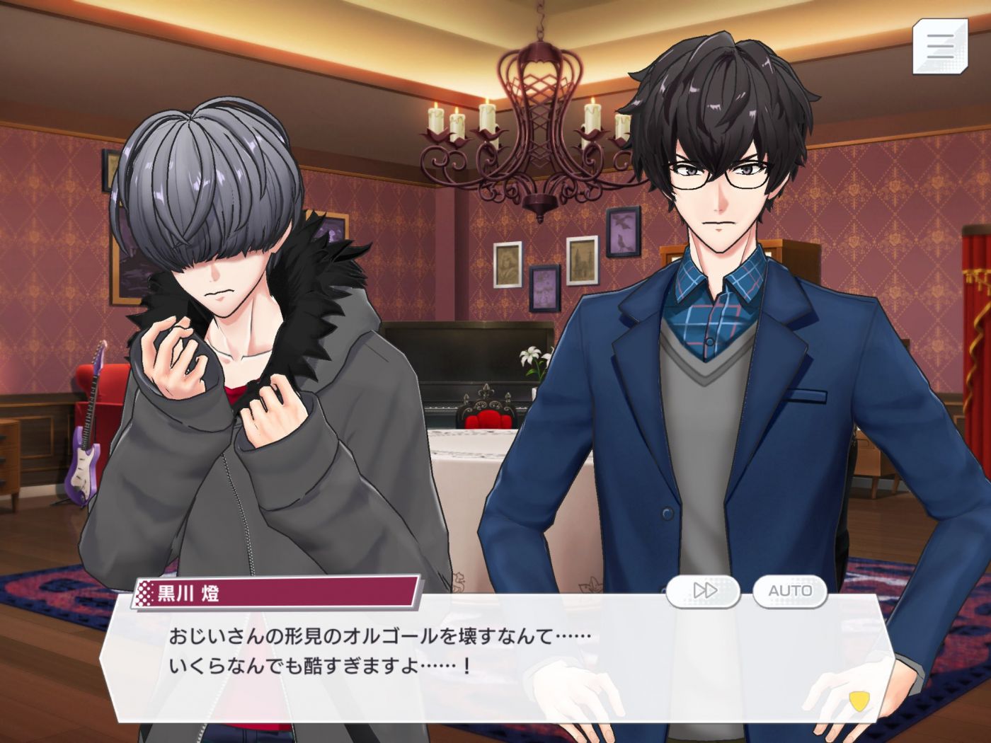 ชู : ขอบใจนะ หืม... กล่องเพลงที่ทำจากแก้วนี่เอง... เห็นดูแลอย่างดีก็นึกว่าจะเป็นอะไรหายากๆ —