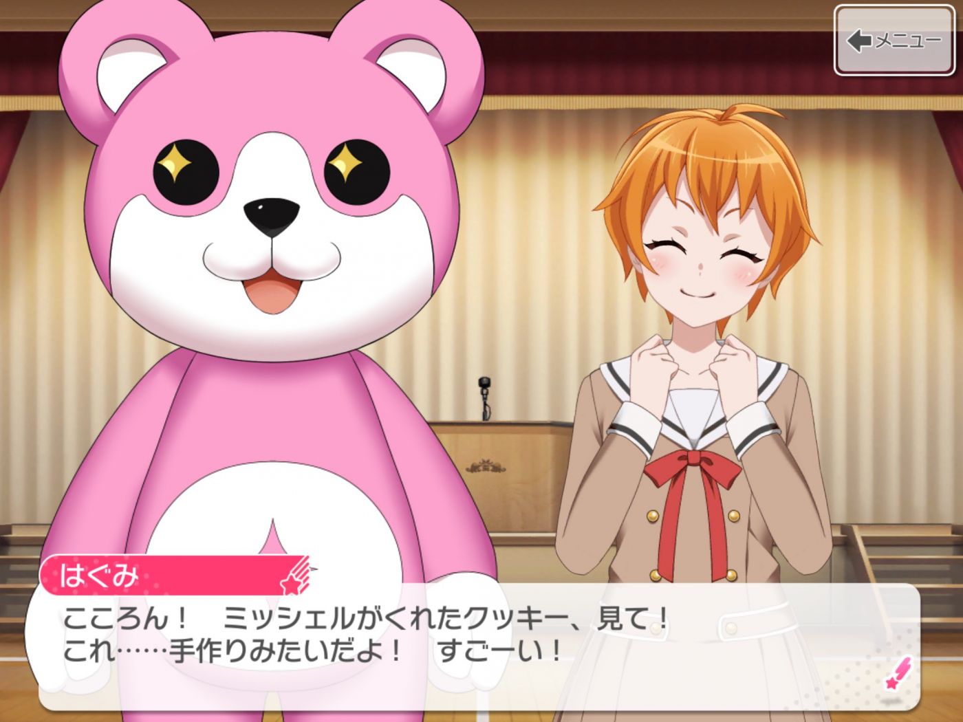 ฮากุมิ : ตั้งตารอของตอบแทนจากมิชเชลอยู่เหมือนกันนะ! ฮากุมิคิดว่าถ้าปีหน้าเป็นคุกกี้อีกก็ดีนะ...เอ๊ะ?