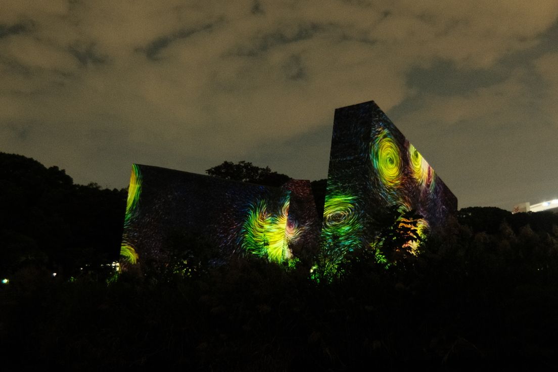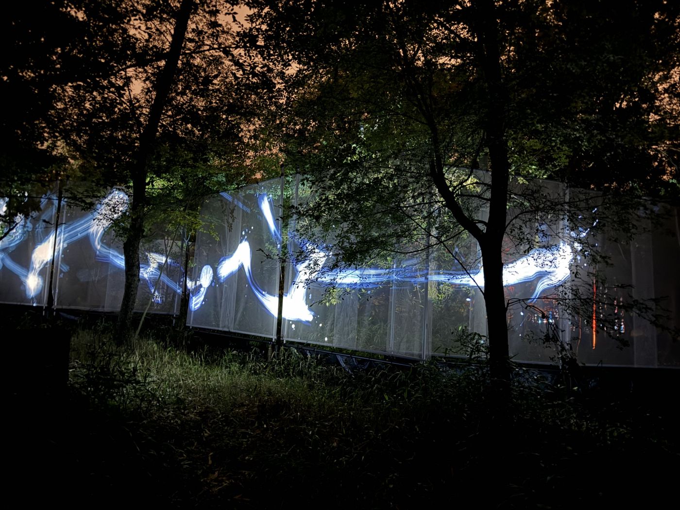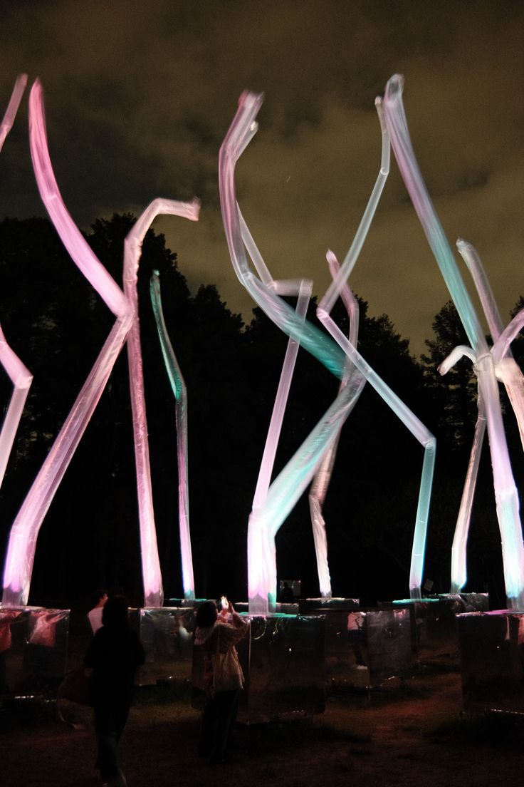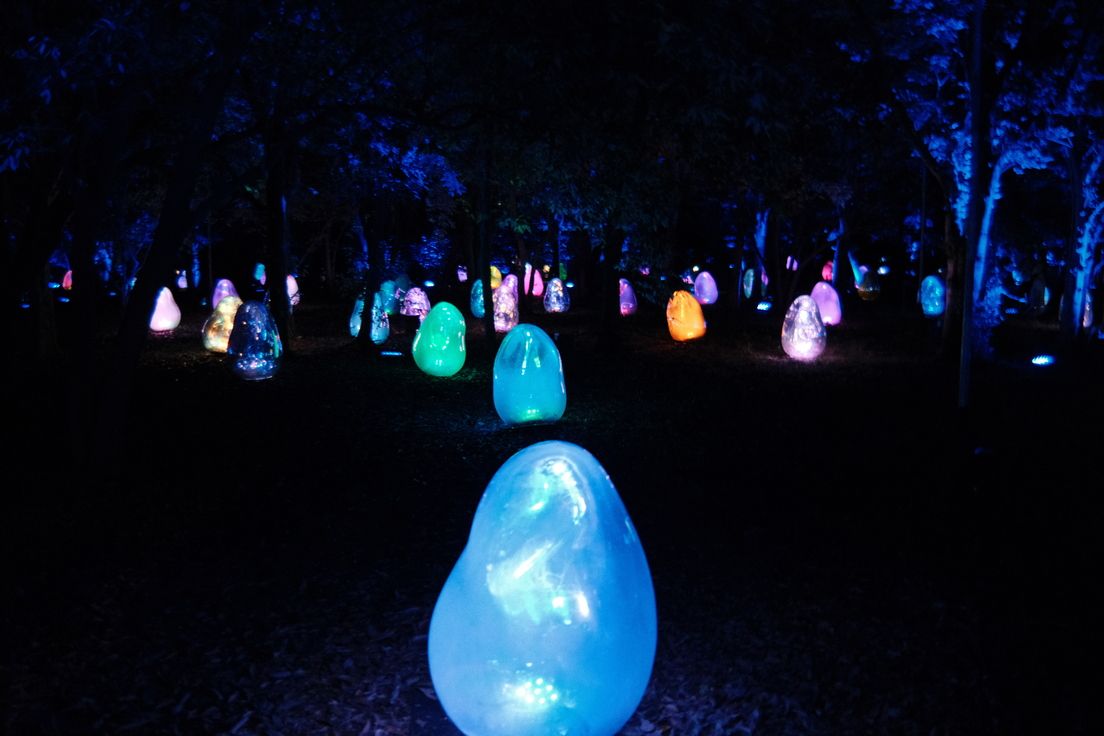 เดินไปซักพักจนเหนื่อยจึงถึงหน้าประตูทางเข้า มีผู้คนมายืนเรียงแถว แสกน QR Code เพื่อเข้างาน (เราซื้อตั๋วล่วงหน้าเอาไว้แล้ว) มีวีดีโอบอกถึงสิ่งที่จะได้เจอคร่าว ๆ จับใจความได้ว่า Art Installation ที่ตั้งไว้สามารถ interact กับสิ่งต่าง ๆ ได้ พอเดินเข้าไปจะเจอกับทางตรงยาวที่มีต้นไม้สองข้างทาง และสิ่งที่ต่อไปนี้จะเรียกว่า “ตัวไข่” (รูปทรงคล้ายกับ JellyBean ถ้าใครเคยกิน) คอยเล่นเสียงดนตรีเมื่อมีคนเดินผ่าน แต่ละอันเป็นเสียงโน็ต 1 ตัว เหมือนจะเป็นของเปียโนที่ใส่ reverb และ echo ไว้เยอะๆ