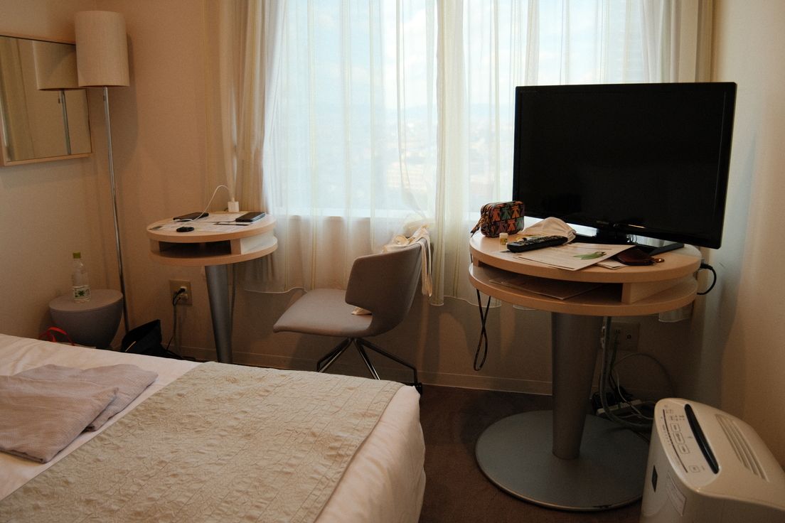 ก่อนที่จะไปยังสถานที่ต่อไป เราขึ้นไปเช็คอินที่พัก ซึ่งบอกไว้ในช่วงแรกว่าอยู่ในสถานีนี้เอง ชื่อ Hotel Granvia Osaka ซึ่งผมคิดว่าคงไม่ต้องโปรโมทอะไรมากเพราะตอนไปก็ได้ยินเสียงคนไทยเดินออกมาจากโรงแรม (แสดงว่าคงเป็นนิยมในหมู่คนไทยอยู่แล้ว) เราพักกันที่ชั้น 23 ซึ่งห้องมีขนาดเล็กแต่ครบครัน อยู่ได้สบาย มีอ่างอาบน้ำให้แช่ ทีวีให้ดู และวิวนอกหน้าต่างให้มอง