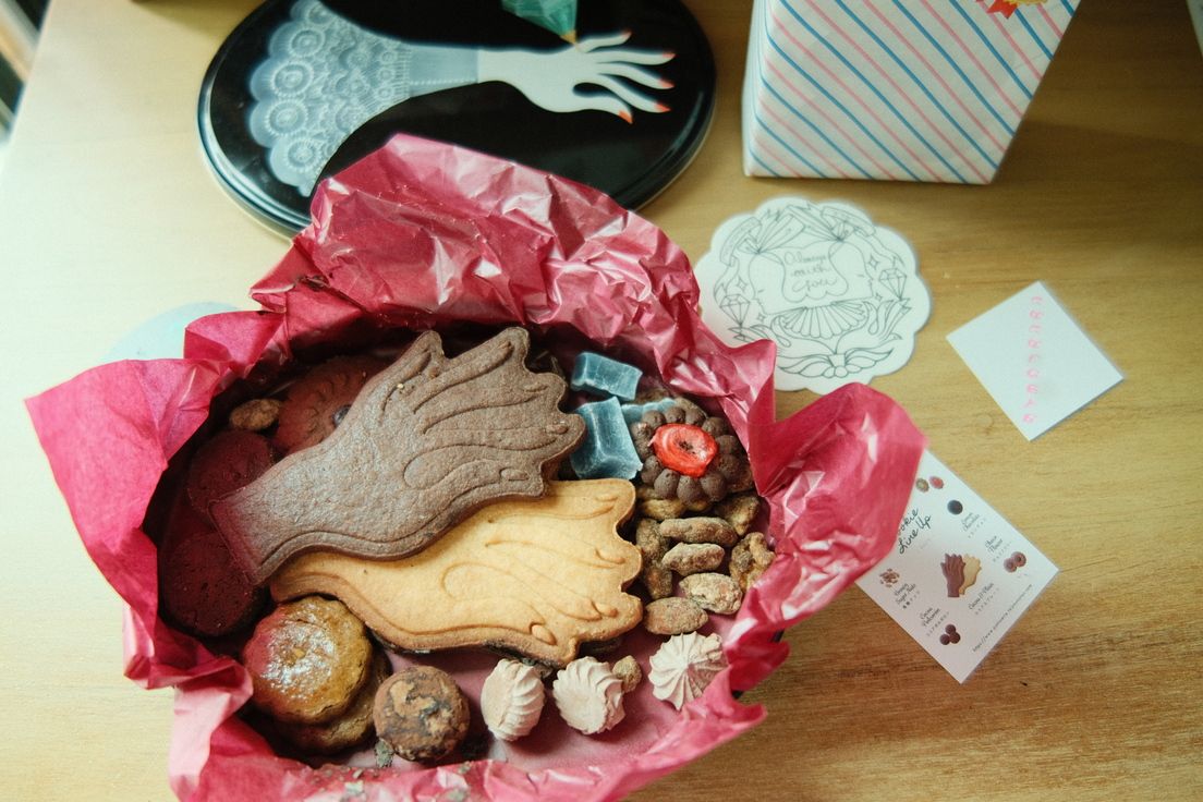 ผมไม่ได้ถ่ายรูปมาเยอะเพราะมัวแต่เดินเลือกเช่นกัน มีร้านหนึ่งเราหยุดอยุ่นานสุดเป็นร้านขายคุ๊กกี้และกาแฟที่ผมเองก็ซื้อกลับมาหนึ่งชุด ส่วนแคทซังซื้อเซ็ทคุ๊กกี้แหวนสวมนิ้วกับกาแฟดริปแบบเป็นซองมา