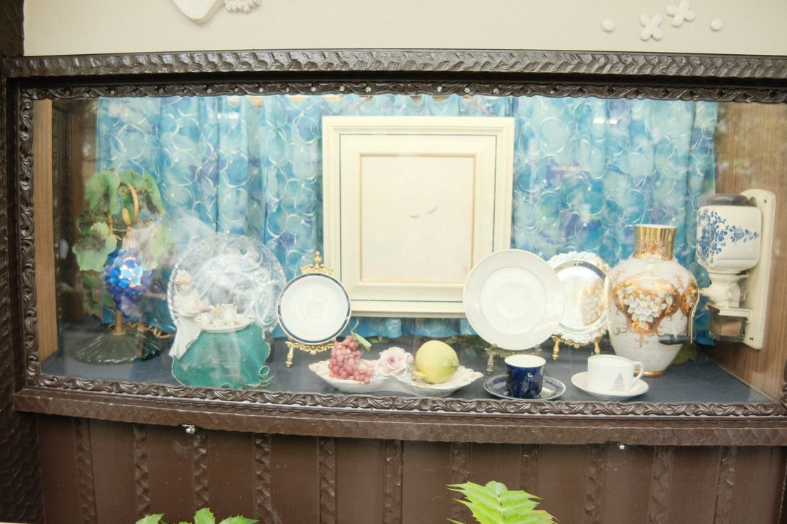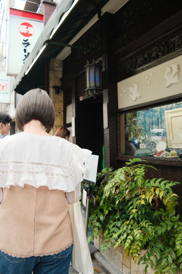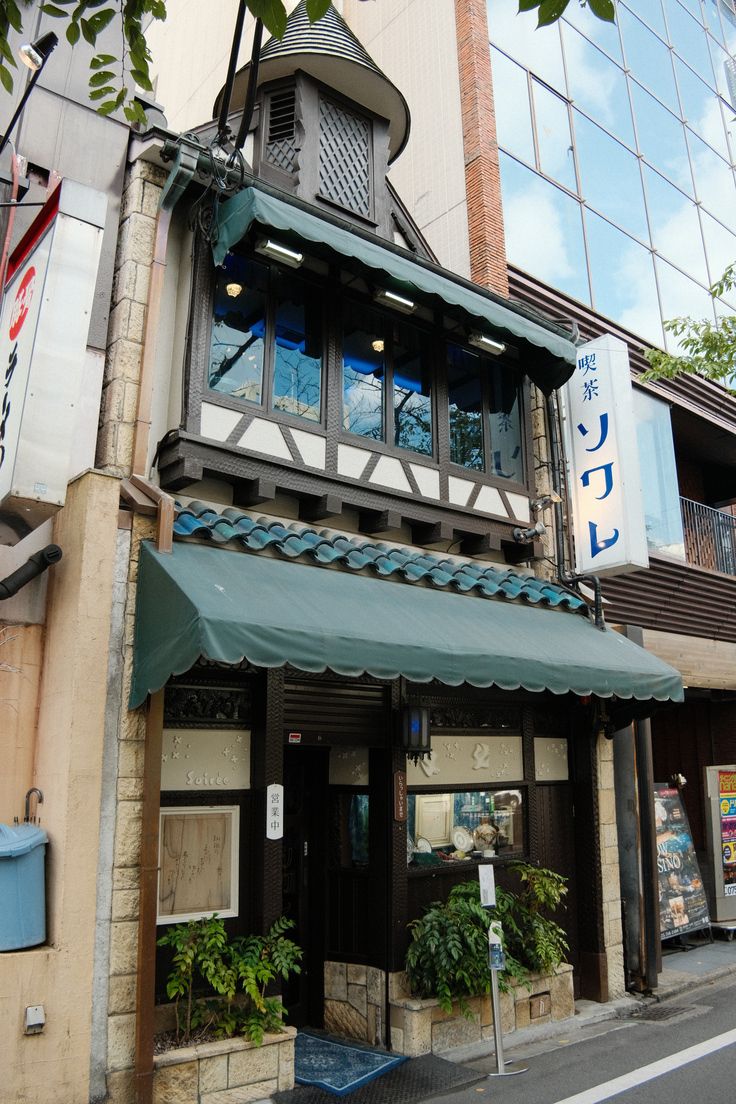(ลายแกะสลักที่ลึกลับตัดกันกับป้ายชื่อร้านที่ดูน่ารัก)