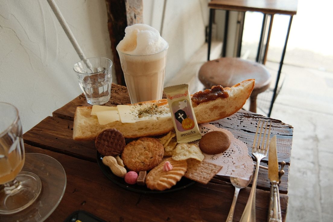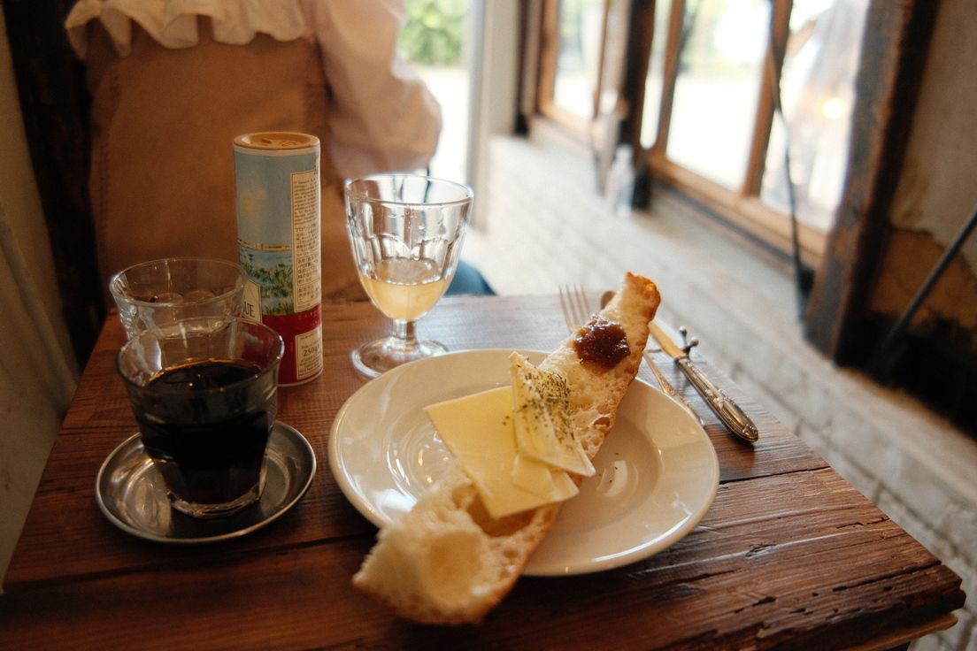 เซ็ทอาหารเช้าที่ผมสั่ง ขนมปังอร่อยดี พอกำลังจะเอาปากกัด เธอ(เจ้าของร้าน)ก็เดินมาบอกอีกว่าสามารถกินได้ 4 แบบ ( กินด้านที่มีแต่แยม กินด้านที่มีแต่เนย กินผสมกัน เอาขนมปังที่เหลือจิ้มกาแฟ) ไอ้เรากำลังหิวแต่ก็ลองทำตามดู ทุกด้านอร่อยหมดยกเว้นตอนจิ้มกาแฟ)