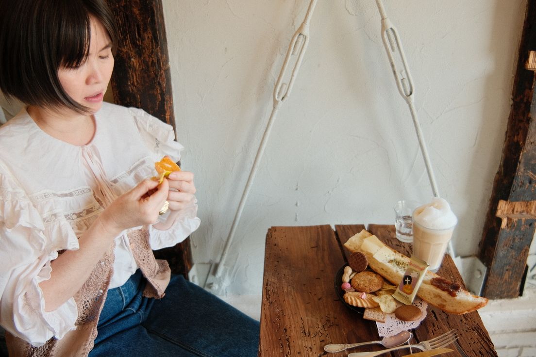 ชุดนี้ของแคทซัง พอขนมมาเสิร์ฟ แกก็อธิบายให้แคทซังฟังอีกว่าขนมแต่ละชิ้นมาจากไหน ประเทศอะไร (เหมือนจะมีจาก ญี่ปุ่น 2 จังหวัด จากอเมริกา ฝรั่งเศส และอินเดีย ถ้าจำไม่ผิด) แกดูภูมิใจที่ได้นำเสนอดี