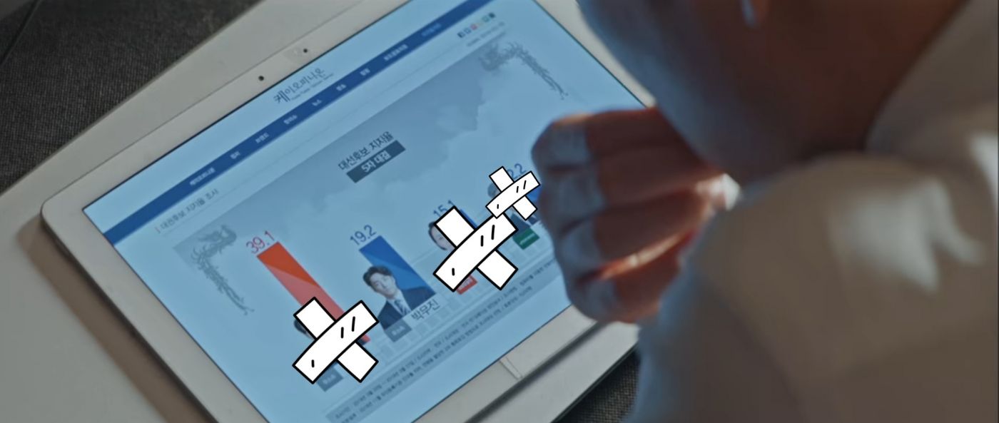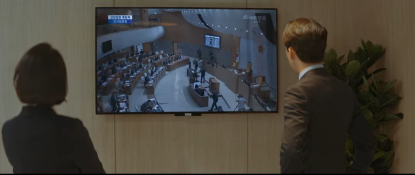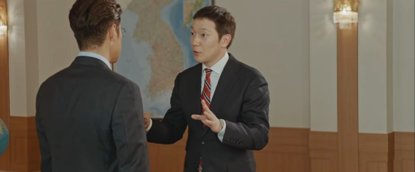 ในเรื่องจะมีทีมฝ่ายค้านคอยตั้งคำถามกับพระเอกอยู่เสมอนั่นก็เป็นเรื่องที่เราเห็นชอบด้วยเลย แน่นอนว่าส่วนหนึ่งมันคือเกมการเมือง แต่อีกส่วนมันคือการตรวจสอบในระบบประชาธิปไตยที่ซีรีส์ได้สื่อให้เราเห็น (เป็นเรื่องโชคดีมากที่ทีมฝ่ายค้านเลือกคว่ำบาตรไม่ไปเข้าประชุมวันนั้น เพราะไม่เห็นด้วยกับนโยบายเกี่ยวกับเกาหลีเหนือของพรรครัฐบาล) เขาได้สร้างตัวละครฝ่ายค้านที่ไม่ได้แย่เกินไปจนเป็นตัวร้าย แต่ยังเป็นนักการเมืองที่ถือวิถีทางในระบอบประชาธิปไตย