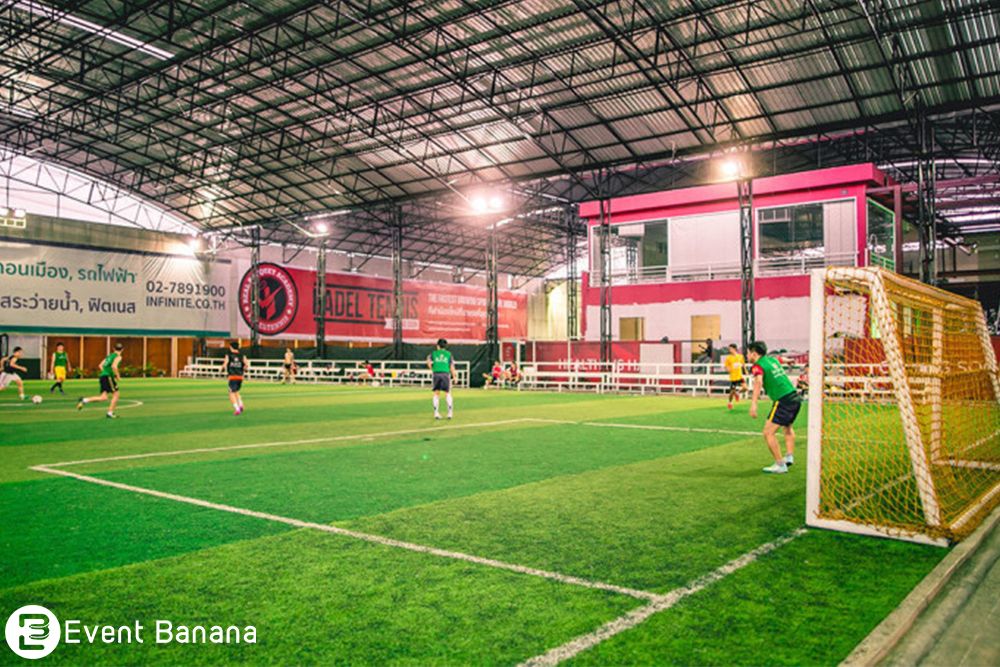 Happy Sport Club สถานที่ออกกำลังกายแบบครบวงจรย่านรัชดา มีสนามหญ้าเทียมสำหรับเล่นฟุตบอล ฟิตเนส และโยคะ อีกหนึ่งสถานที่ที่เหมาะสำหรับการจัด Team Building แนวกีฬา เช่นการจัดแข่งขันฟุตบอลตามแผนก ออกแบบกิจกรรมได้ตามความเหมาะสม นอกจากนี้ยังมีห้องจัดเลี้ยง รองรับผู้ร่วมงานได้ 350 คน ไว้จัดปาร์ตี้หลังจากทำกิจกรรมอย่างสนุกสุดเหวี่ยงในตอนกลางวัน