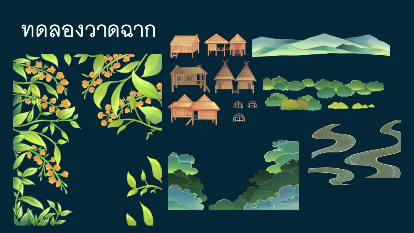 ภาพที่ ๔: วาดฉากเพื่อทดลองทำแอนิเมชัน