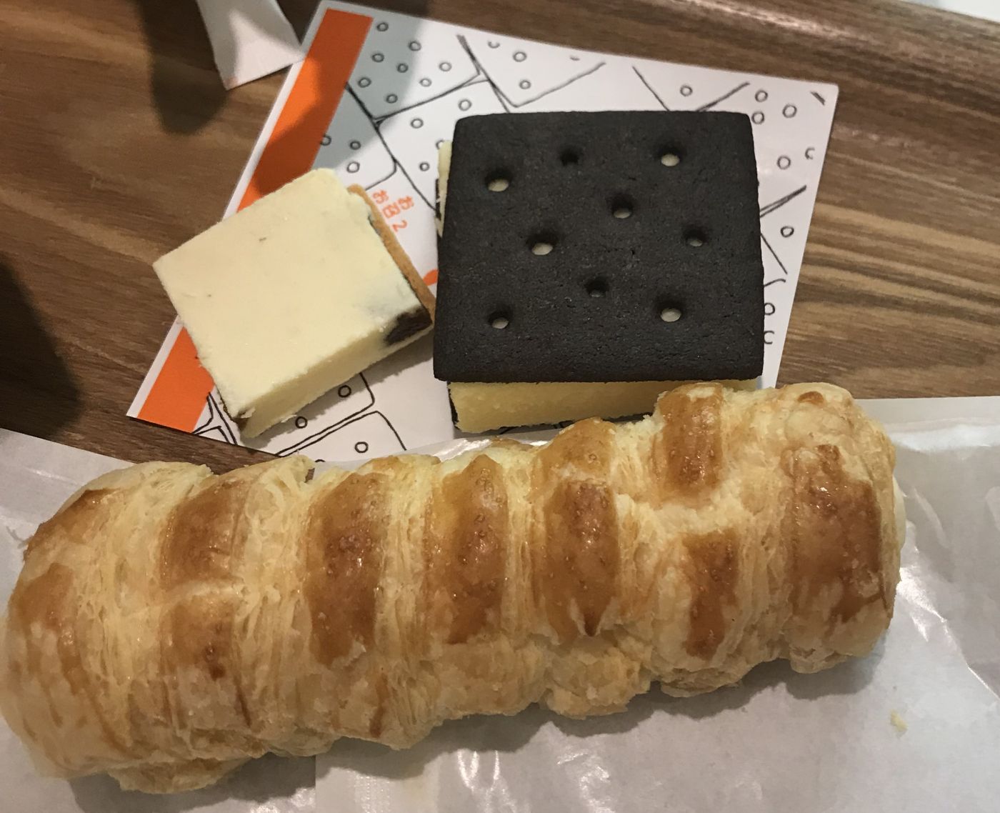 โคนครีมและช็อกโกแลตคุกกี้ใส้ครีมชีส พร้อมกาแฟฟรีเติมได้ไม่อั้นสำหรับทานที่เคาน์เตอร์ชั้น 1