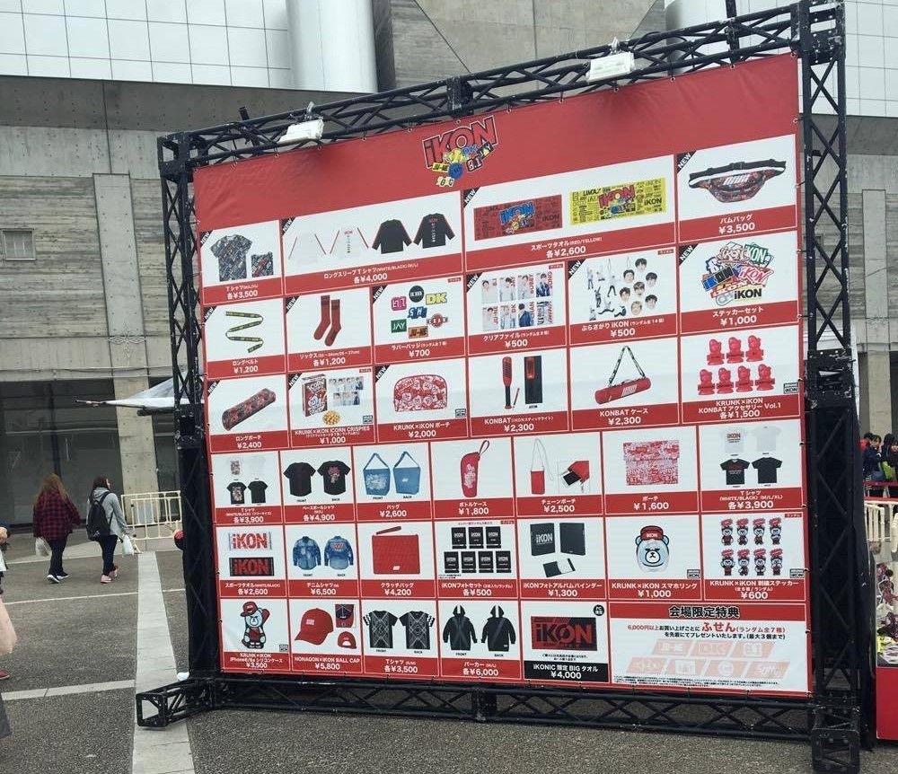 การซื้อสินค้าหน้าคอนเสิร์ตของ iKON จะจัดให้ซื้อแบบ 1-1 วิธีการซื้อก็ไม่ยาก อยากได้อันไหนก็บอกทางสตาฟ บอกจำนวน ถ้าใครไม่ได้ภาษาญี่ปุ่น ก็ใช้ภาษาอังกฤษหรือภาษามือก็ได้ค่ะ ทางสตาฟเข้าใจอยู่ค่ะ ส่วนที่ยากที่สุดคือการขนของกลับค่ะ เพราะทางสตาฟจะไม่มี 'ถุงพลาสติก' ใส่ให้เรานะคะ เขาจะถือว่า คุณซื้อเอง คุณต้องหากะเป๋าหรือถุงมาขนของกลับเองค่ะ รอบนี้เรากับเพื่อเปิดรับพรีกันด้วยค่ะ สภาพเลยเป็นอย่างในรูปค่ะ ต้องเอาของที่ซื้อมาทั้งหมดใส่ลงกะเป๋าที่เตรียมไป และแบกขนกันกลับมาค่ะ เหนื่อยกันพอสมควรเลย บางสินค้าเป็นแบบ Random ก็เปิดหาแลกกันตรงบริเวณสถานที่จัดงานได้เลยค่ะ จะมีแฟนคลับที่ยืนรอแลกเมมเบอร์ที่ตัวเองอยากได้กันเพียบเลย