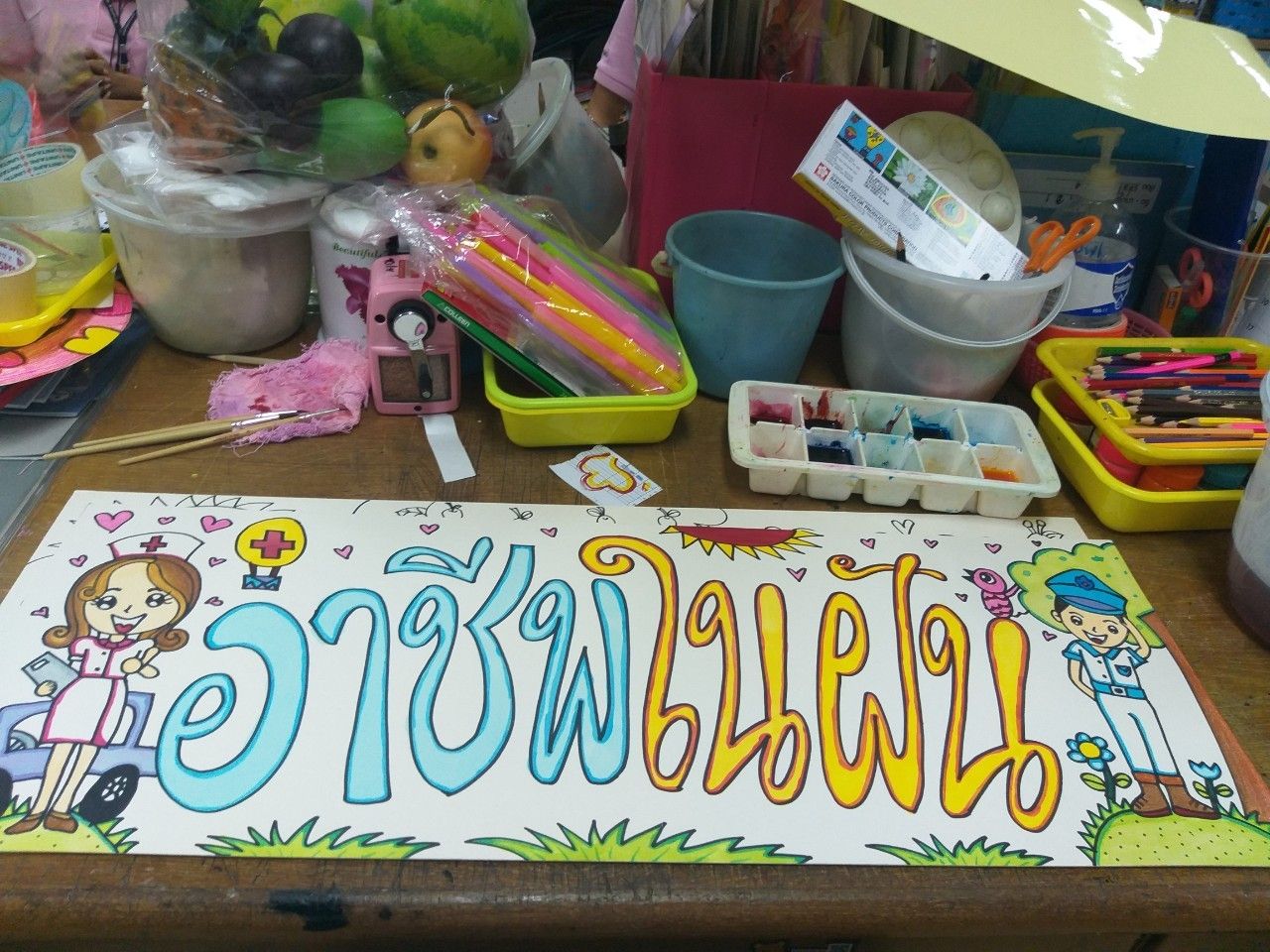 ในที่สุดก็ได้ไปฝึกงานแล้ว! ได้ฝึกงานเป็นผู้ช่วยครูสอนศิลปะล่ะ ตอนที่รู้ว่าตัวเองได้ตำแหน่งนี้มาแอบกลัวอยู่เหมือนกัน ตัวเองที่อ่อนศิลปะชนิดที่ว่าจะเลือกสีมาทำงานกลุ่มเพื่อนยังบอกเดียวเลือกสีให้เอง ตอนนี้ต้องมาช่วยสอนศิลปะเสียแล้วแบบนี้จะรอดไหมล่ะนี่ แต่ว่าเรื่องสอนเด็กก็ต้องรอไปก่อนเพราะว่าในตอนเริ่มฝึกงานก็ยังไม่ได้เปิดเทอมก็เลยไม่มีเด็ก ๆ มา ช่วงฝึกงานรอเปิดเทอมส่วนมากก็จะช่วยพวกพี่ ๆ ทำสื่อการสอน แต่ว่ามาวันแรกก็ประเดิมทำตัวเองโดนคัตเตอร์บาดได้เลือดเลย T__T รู้สึกผิดมาก ๆ ทำทุกคนวุ่นวายไปหมดตั้งแต่วันแรก ขอโทษด้วยนะคะ ฮือออ หลังจากนี้จะระวังของมีคมให้มากขึ้นค่ะแง (จริง ๆ โดนกระดาษบาดเลือดออกอีกทีด้วยอีกต่างหาก...ข้างหนึ่งคัตเตอร์บาด อีกข้างกระดาษบาด ต้อนรับฝึกงานได้โชกเลือดมาก) หลังจากนั้นส่วนมากก็จะเป็นงานระบายสีเป็นส่วนใหญ่