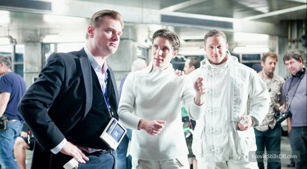 คริสโตเฟอร์ โนแลนกับคิลเลียน เมอร์ฟี และทอม ฮาร์ดี ในกองถ่าย Inception (2010)