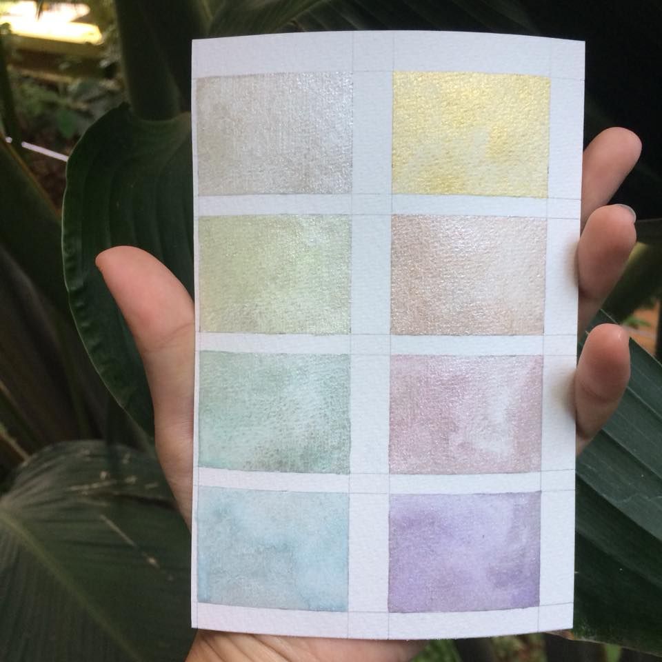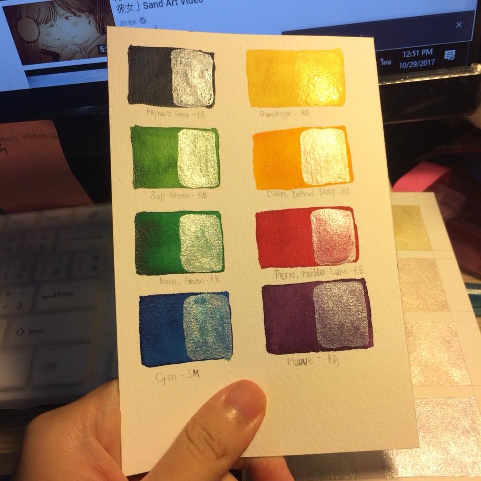 รีวิวนี้เราไม่ได้ทำตัวอย่างการใช้งานของสีน้ำประกายมุกมานะคะ